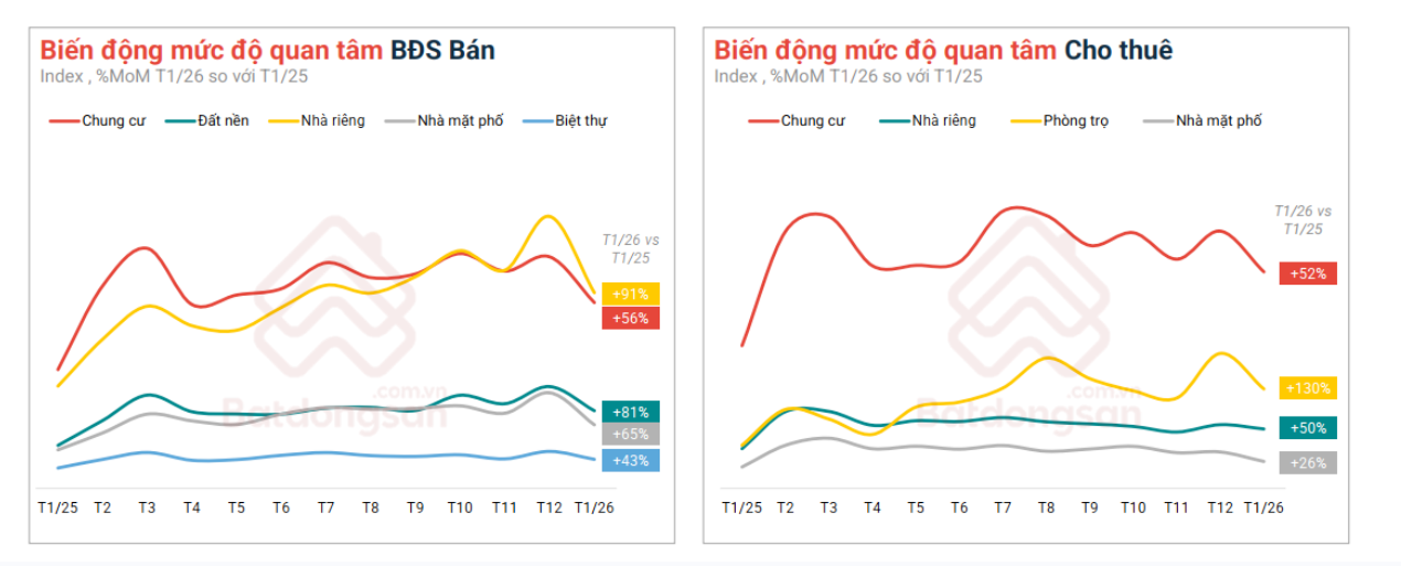 “Xu hướng này phản ánh tính chu kỳ của thị trường khi người dùng tích cực tìm kiếm không gian sống mới ngay từ những tuần đầu năm. Tuy nhiên, thay vì tăng trưởng đồng đều, dòng tiền và nhu cầu tìm kiếm đang tập trung chủ yếu vào các phân khúc nhà ở phổ thông phục vụ nhu cầu thực của đại đa số người dân”, đại diện đơn vị nghiên cứu chia sẻ.