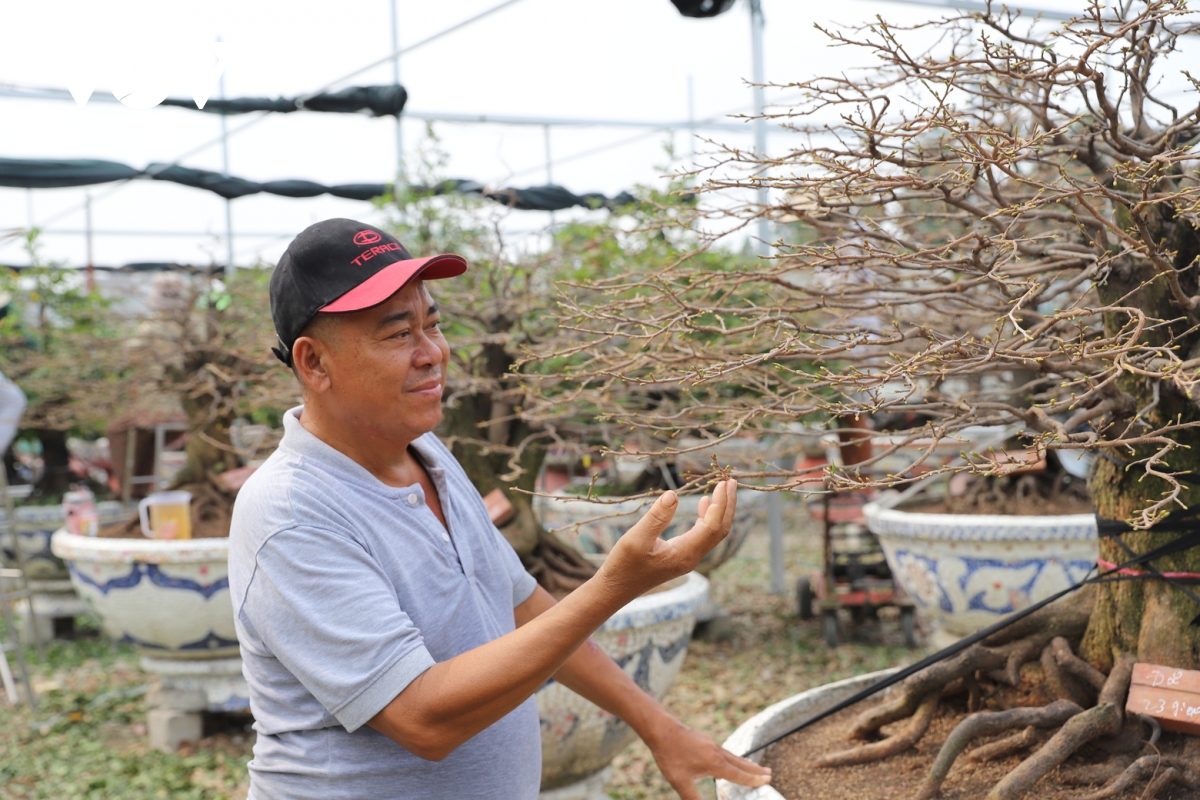 Theo ông Phương, thời tiết thất thường nên chi phí chăm sóc mai khá tốn kém (Ảnh: Hoàng Minh)