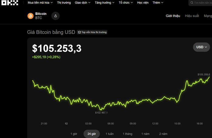 Bitcoin đang giao dịch ở vùng 105.250 USD Nguồn: OKX
