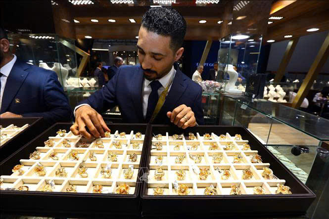 Trang sức vàng được bày bán tại tiệm kim hoàn ở Seoul, Hàn Quốc. Ảnh: Yonhap/TTXVN