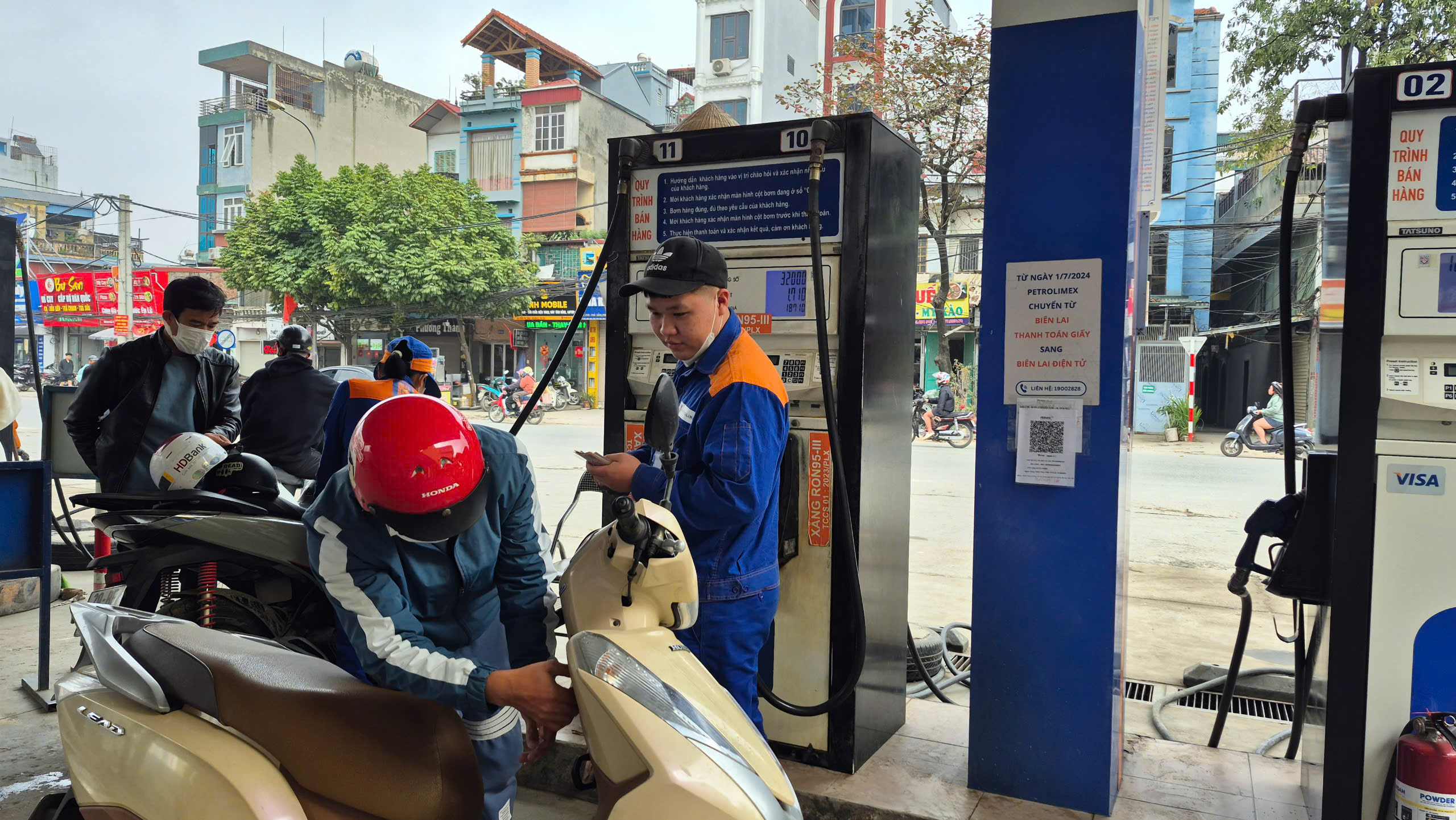 Người dân đổ xăng tại một cây xăng ở Hà Nội. Ảnh: AH