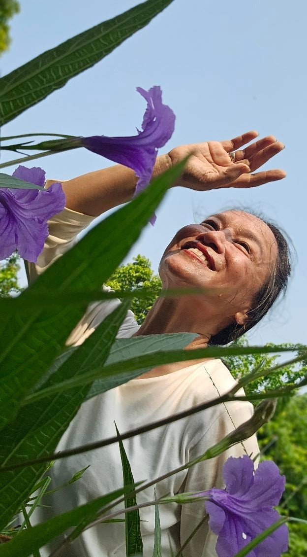 Một bụi hoa chiều tím cũng đủ khiến nữ nghệ sĩ thấy như cả một "thu tím". Ảnh: FB Oanh Le Tu