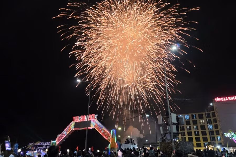 Khép lại đêm khai trương là màn pháo hoa rực rỡ với 130 giàn kéo dài 15 phút, thắp sáng bầu trời biển Thiên Cầm, mở ra kỳ vọng về một mùa du lịch thắng lợi.