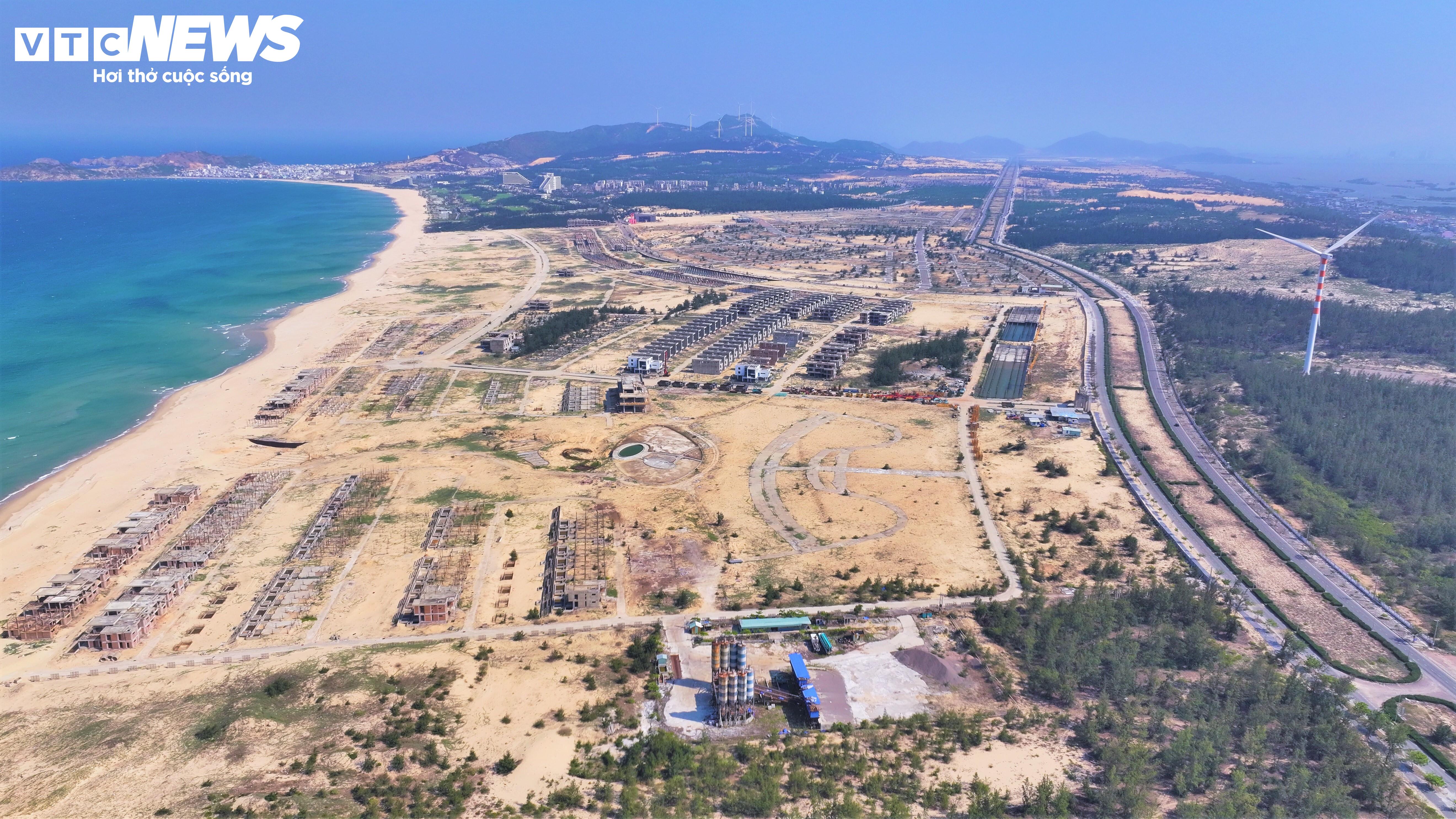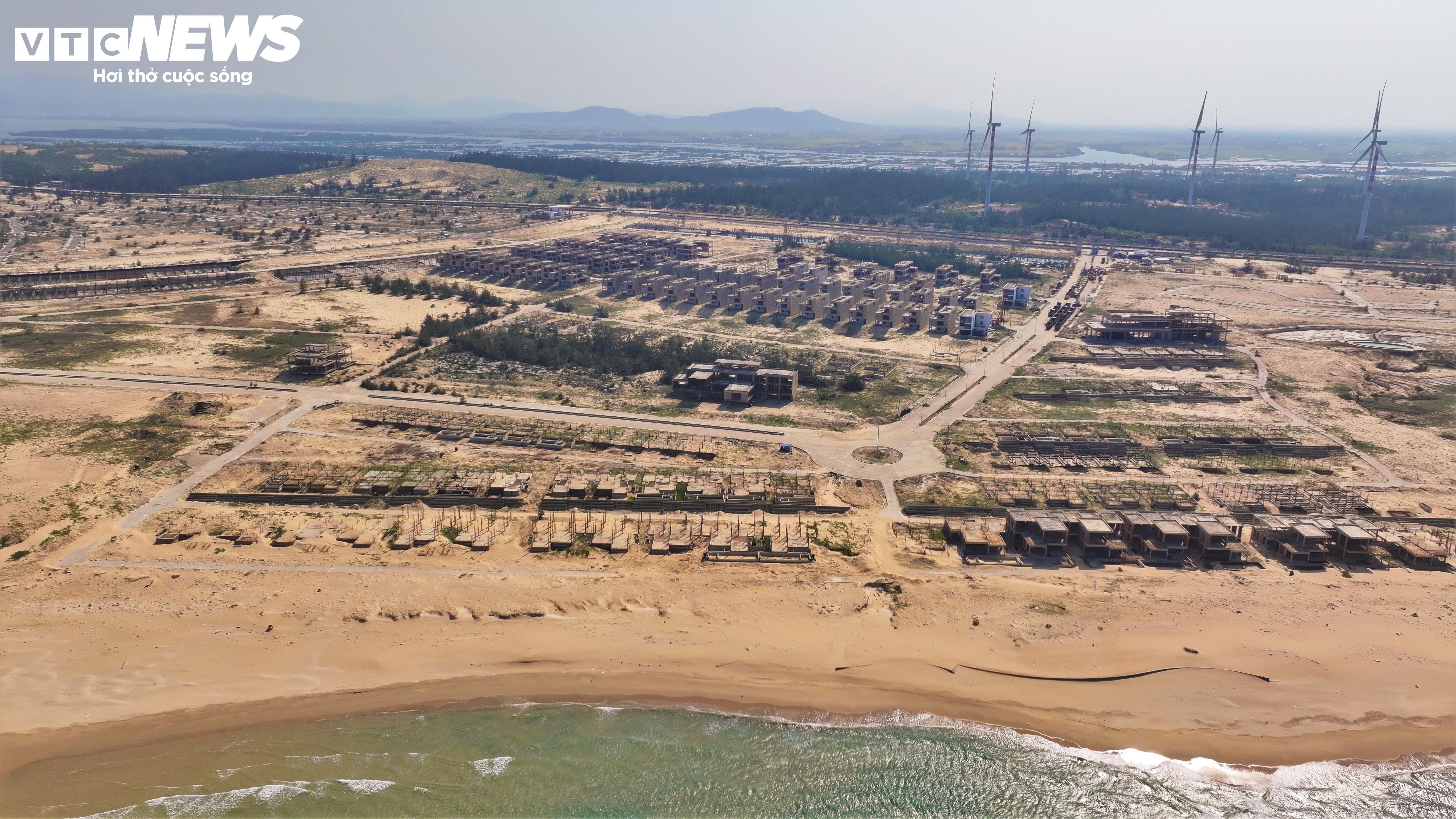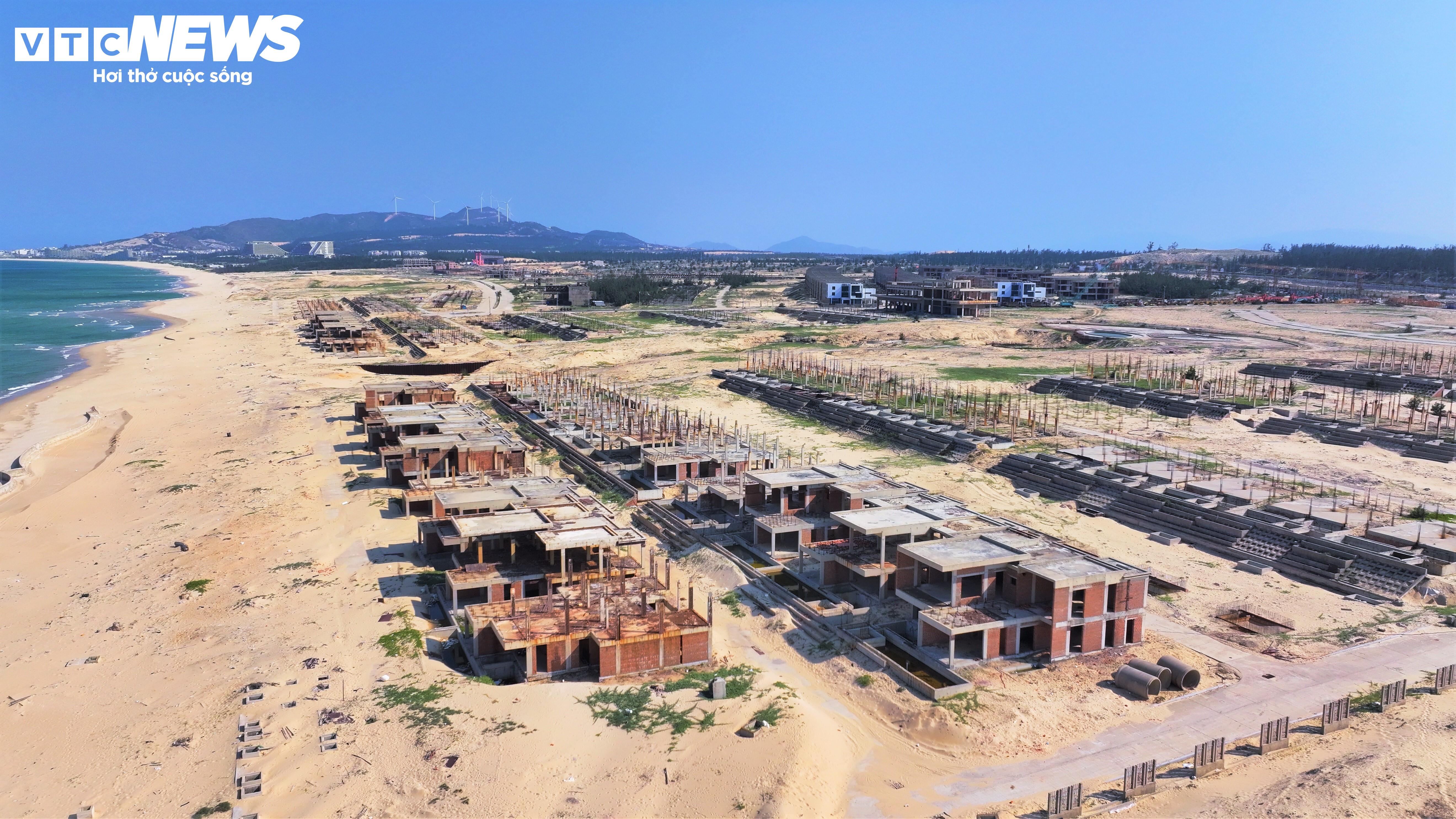 Tuy nhiên đến nay, dự án mới triển khai khối lượng hơn 3.000 tỷ đồng rồi tạm dừng hoạt động. Hàng loạt căn biệt thự ven biển đang xây dựng dang dở, ngổn ngang.