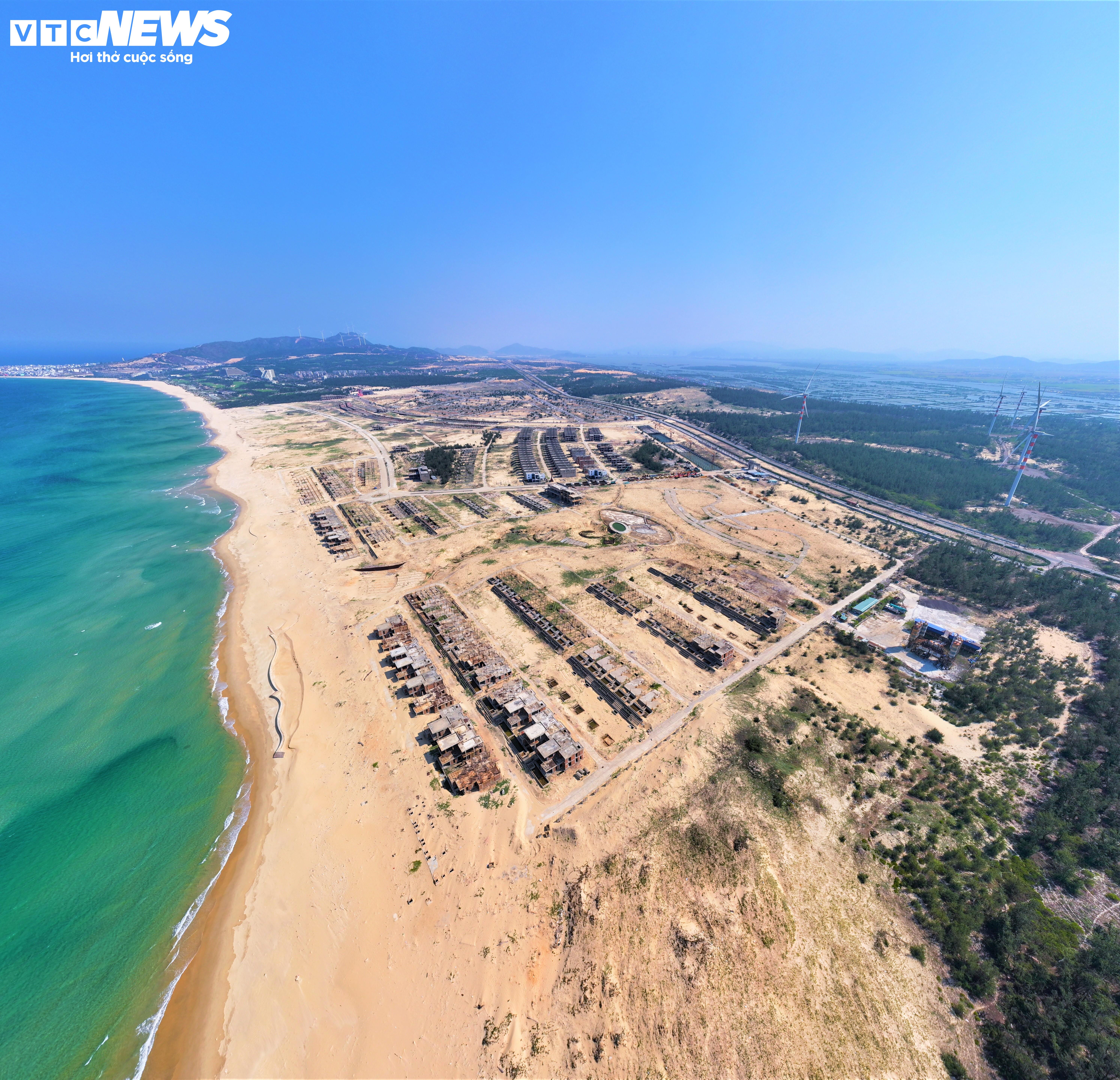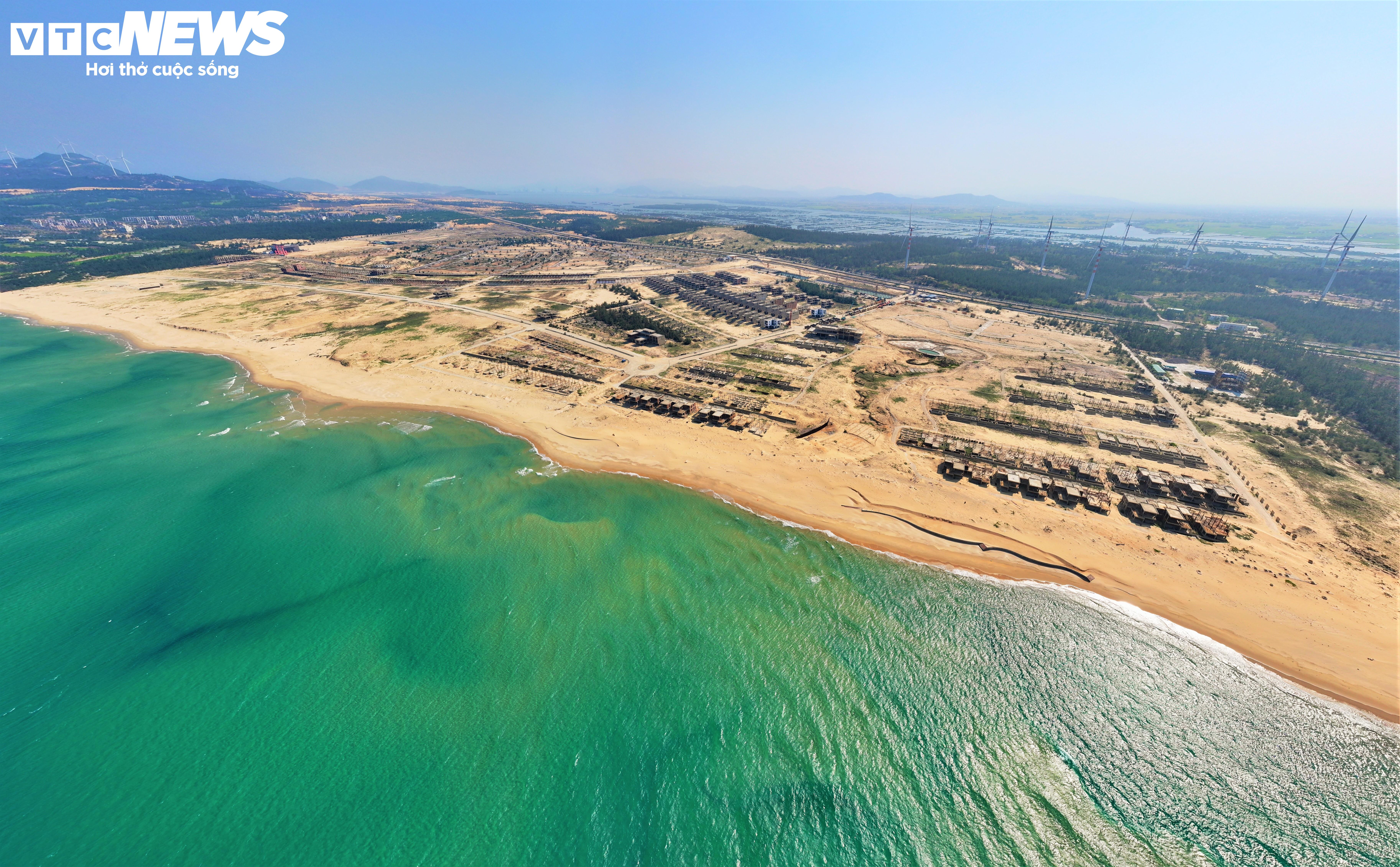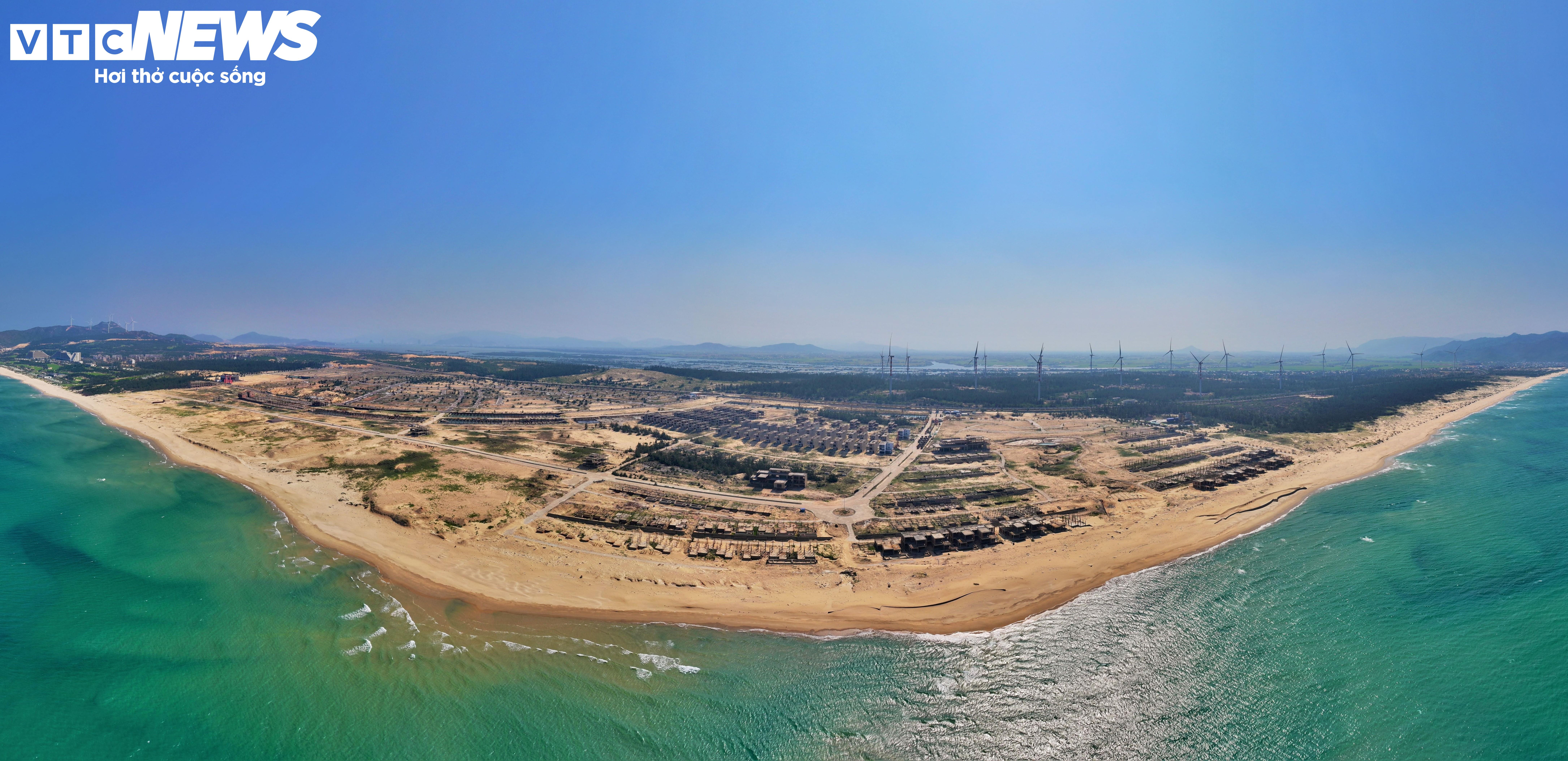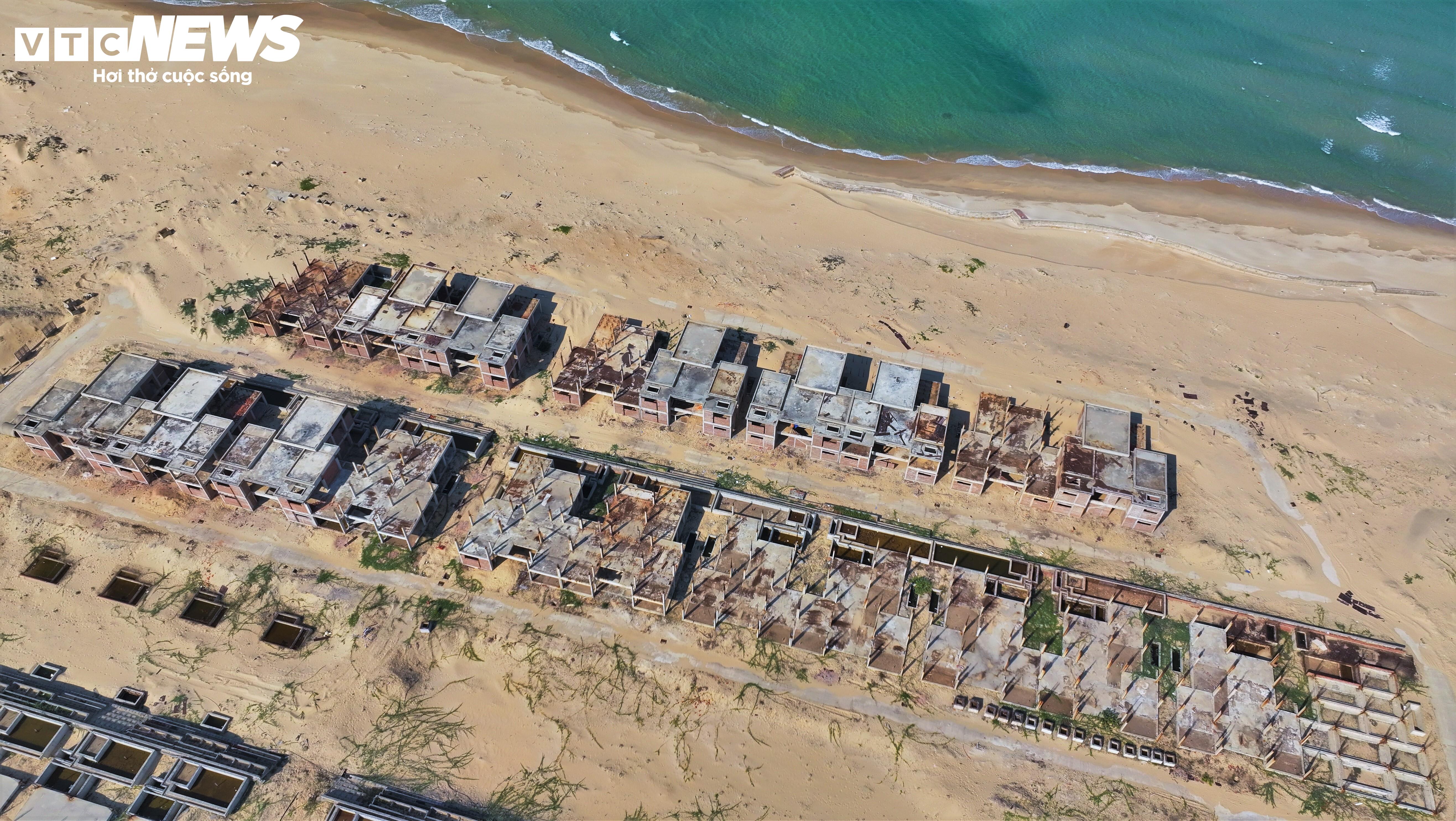 Tuy nhiên đến nay, dự án mới triển khai khối lượng hơn 3.000 tỷ đồng rồi tạm dừng hoạt động. Hàng loạt căn biệt thự ven biển đang xây dựng dang dở, ngổn ngang.