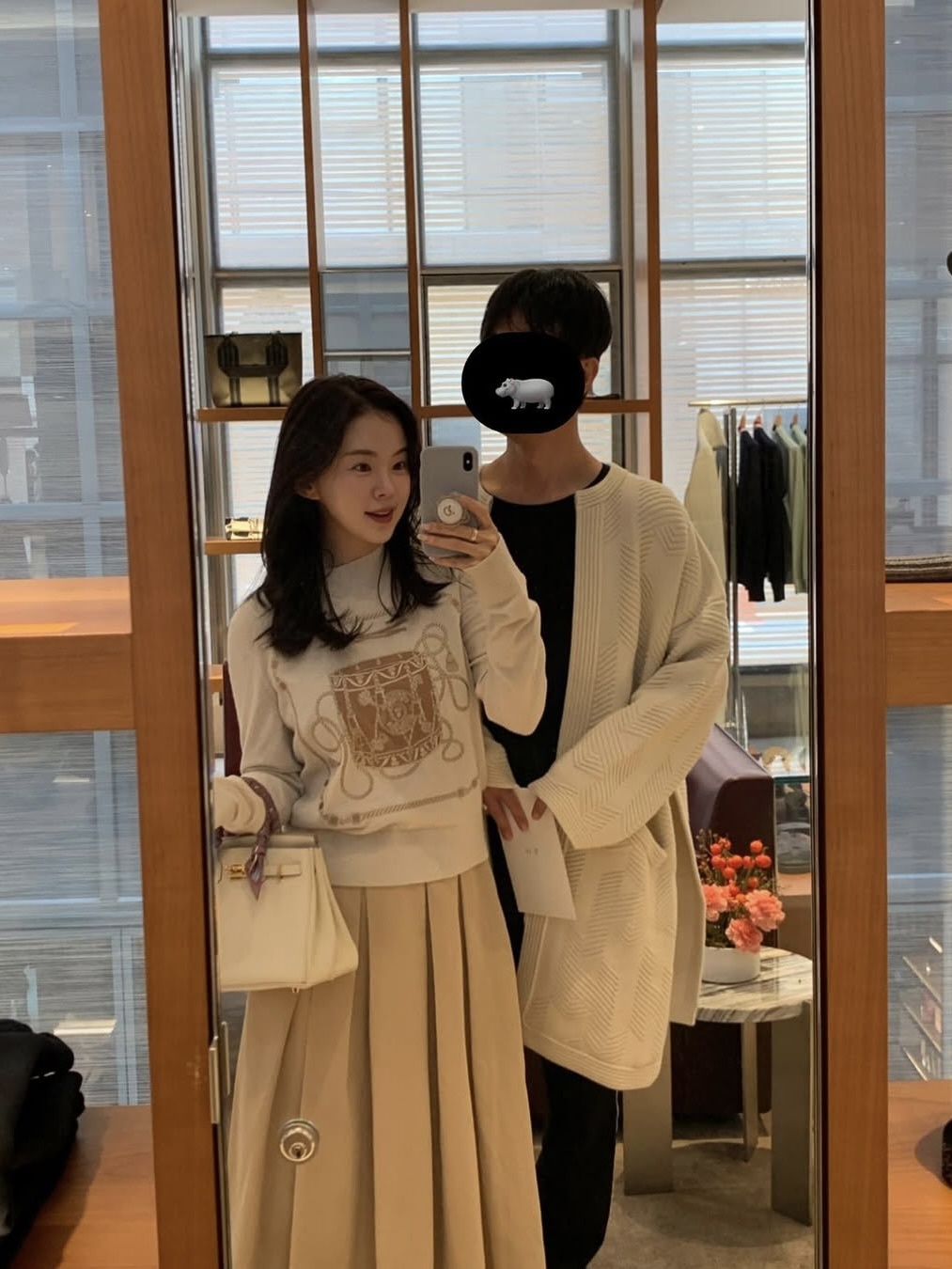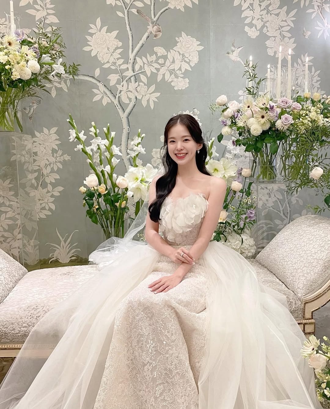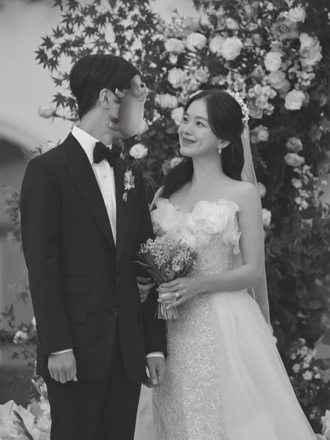Trong mọi bức hình được đăng tải trên trang cá nhân, kể cả ảnh cưới, người chồng luôn bị che mặt hoặc được chụp từ sau lưng. Điều này gây tò mò về gia thế và học thức của nửa kia. Ảnh: haneulina/Instagram.