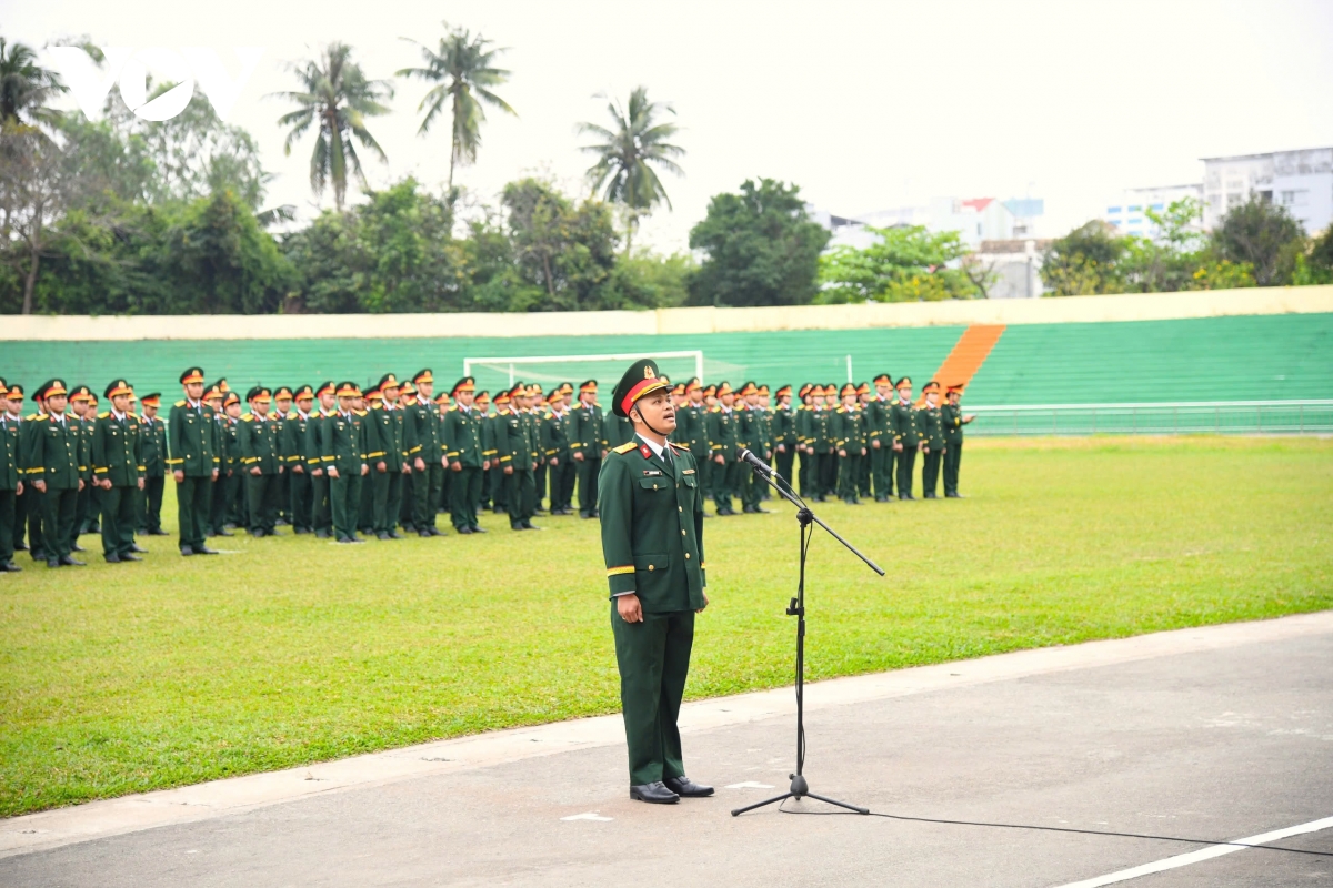 Trung tướng Lê Ngọc Hải, Ủy viên Trung ương Đảng, Tư lệnh Quân khu 5 chủ trì buổi lễ chào cờ đầu năm.