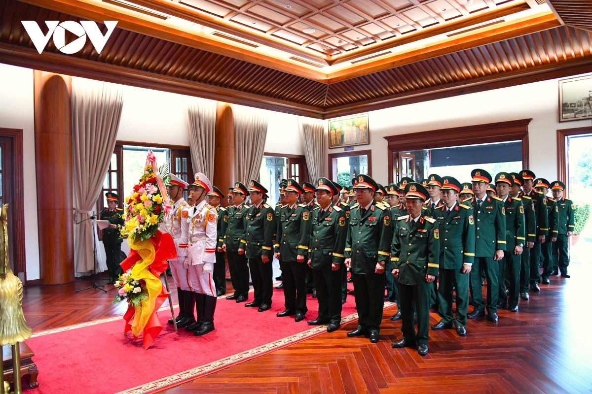Dâng hoa tưởng niệm Chủ tịch Hồ Chí Minh, Đại tướng Võ Nguyên Giáp và các liệt sĩ văn nghệ sĩ, báo chí Liên khu 5 tại Bảo tàng Hồ Chí Minh - Chi nhánh Quân khu 5 dịp Xuân mới.