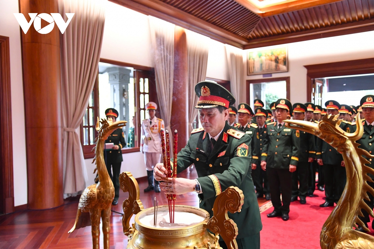 Dâng hương tưởng niệm Chủ tịch Hồ Chí Minh, Đại tướng Võ Nguyên Giáp và các liệt sĩ văn nghệ sĩ, báo chí Liên khu 5 tại Bảo tàng Hồ Chí Minh - Chi nhánh Quân khu 5 dịp Xuân mới.