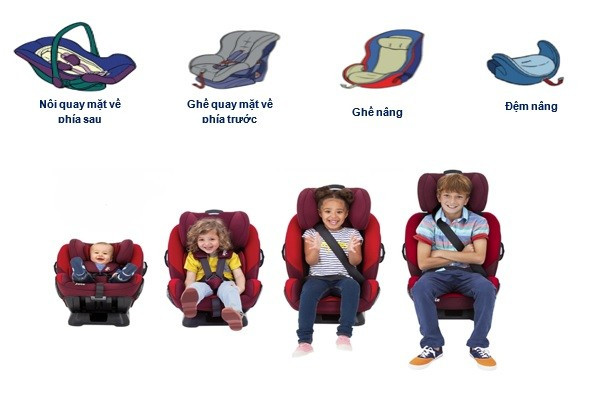 Theo thông tin trên trang Ủy ban An toàn giao thông Quốc gia, PGS.TS Phạm Việt Cường Giám đốc trung tâm Nghiên cứu chính sách và Phòng chống chấn thương, Trường Đại học Y tế Công Cộng cho biết, thiết bị an toàn cho trẻ em trên xe ô tô có thể bao gồm một số loại: Nôi trẻ em sơ sinh (thường dùng cho trẻ < 2 tuổi); ghế trẻ em nhỏ (cho trẻ từ 2-6 tuổi); và các loại ghế nâng và đệm nâng (cho trẻ từ 6-10 tuổi).