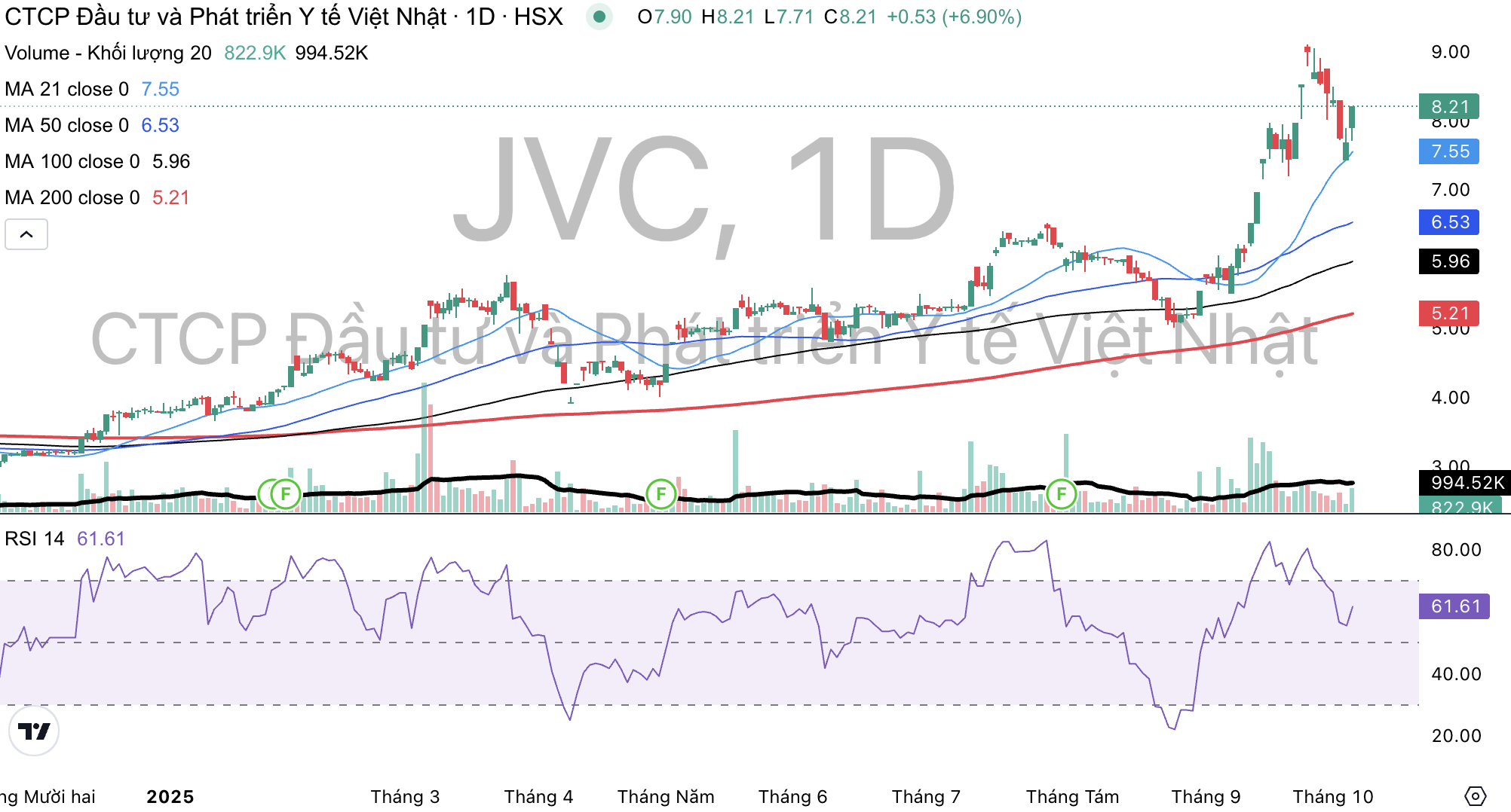 Về cổ phiếu, đóng cửa phiên giao dịch ngày 6/10, cổ phiếu JVC tăng 530 đồng lên 8.210 đồng/cổ phiếu và nếu nhìn rộng ra từ ngày 28/8 tới nay, cổ phiếu JVC đã tăng 58,5%, từ 5.180 đồng/cổ phiếu.