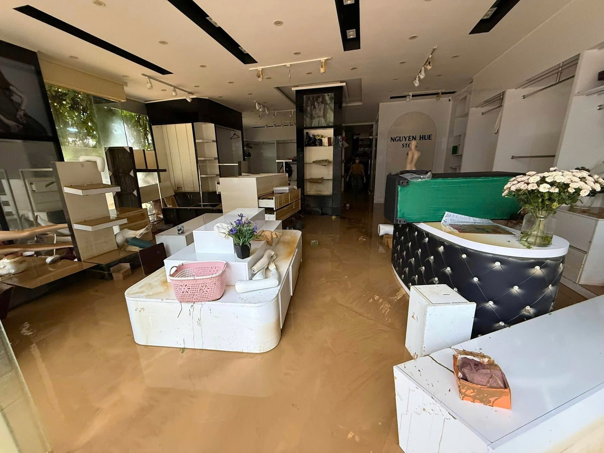 Theo chị Dương, tuyến đường này ở vị trí khá cao. Suốt nhiều năm buôn bán ở đây, chị chưa bao giờ thấy nước ngập sâu đến thế. Khi nghe tin lũ về, chị vội về nhà đưa con đi sơ tán. Đến lúc quay lại cửa hàng, đường đã ngập hơn 2 m, không thể tiếp cận được, chị đành bất lực để mọi thứ bị nước nhấn chìm.