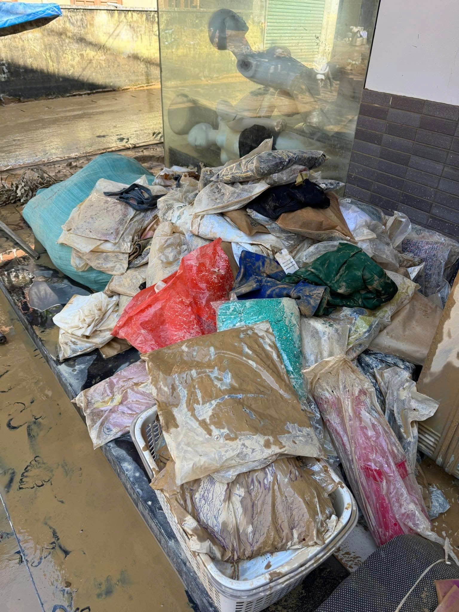 “Những bộ quần áo còn bọc nylon bên ngoài thì tạm giữ được, có thể thanh lý cho những ai cần. Còn đồ treo làm mẫu, đồ để ở sàn dính bùn hết, phải bỏ đi”, chị Dương nói.