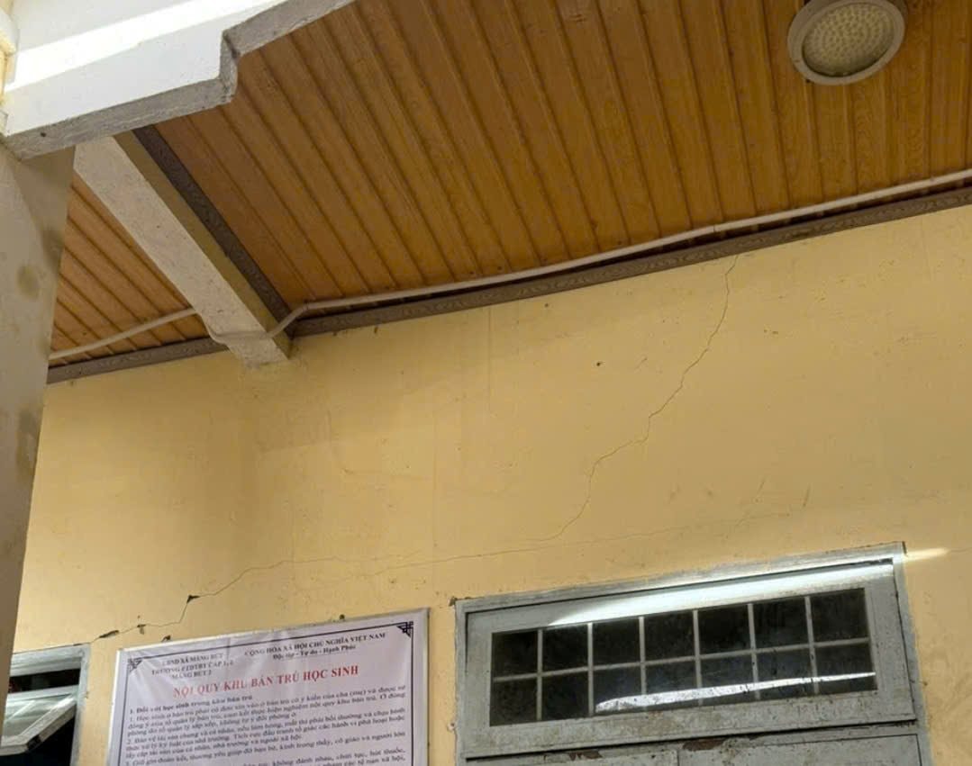 Bốn phòng ở của 60 học sinh bán trú bị xé nứt cấu trúc tường; năm phòng ở của giáo viên bị xô lệch, gãy cấu trúc mái.