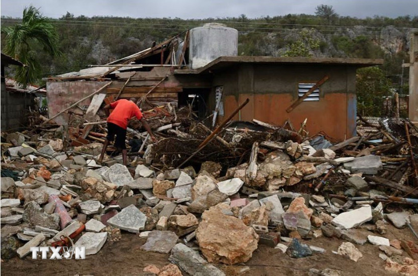 Bão Melissa đánh sập nhiều ngôi nhà ở Santiago, Cuba. (Ảnh: Reuters/TTXVN)