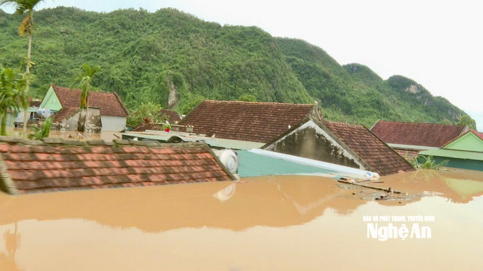 Nhà cửa ở Nghệ An chìm trong biển nước. Ảnh: báo Nghệ An