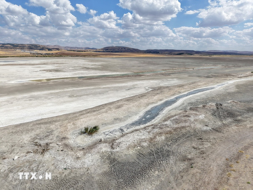 Hồ Mogan ở Ankara, Thổ Nhĩ Kỳ khô cạn do hạn hán, ngày 5/9/2025. (Ảnh: THX/TTXVN)