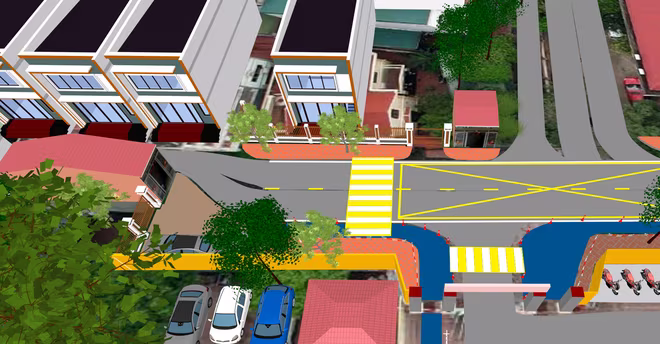 Phương án thiết kế đề xuất sau đó được kiểm tra trên thực địa thông qua một can thiệp thử nghiệm nhằm thu thập ý kiến phản hồi và quan sát cách thức không gian đường phố được sử dụng. Trên cơ sở các kết quả thu được, dự án sẽ điều chỉnh và hoàn thiện thiết kế, đồng thời triển khai các hạ tầng cố định như vạch qua đường nâng cao và gồ giảm tốc nhằm giảm tốc độ phương tiện và tạo dựng một môi trường an toàn hơn cho tất cả mọi người.