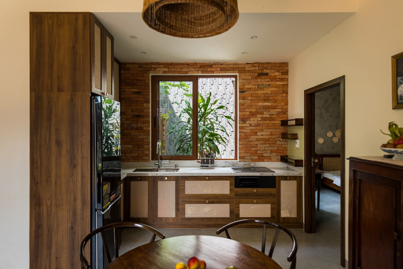 Ngôi nhà được thiết kế theo tinh thần giản dị, gần gũi, kết hợp hài hòa giữa cái mới và cái xưa cũ, từ vật liệu, đồ nội thất đến cách tổ chức không gian.
