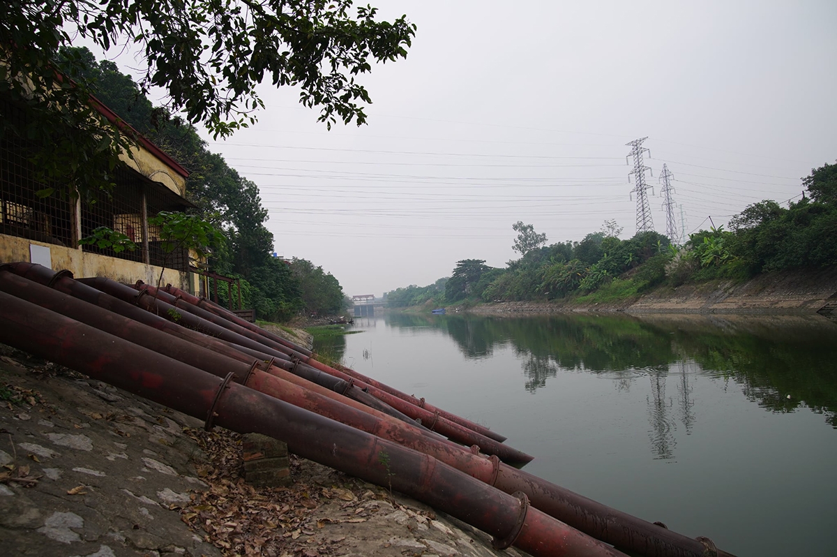 Nước sông Hồng dẫn vào trạm bơm Thụy Phương
