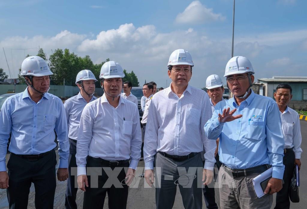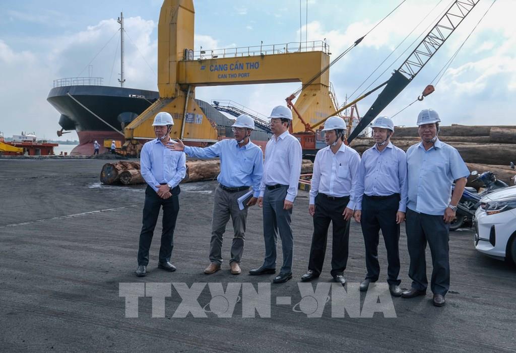 Phó Chủ tịch UBND thành phố Cần Thơ Vương Quốc Nam (thứ hai từ phải sang) khảo sát hoạt động cảng Cái Cui ngày 26/12. Ảnh: Thanh Liêm - TTXVN