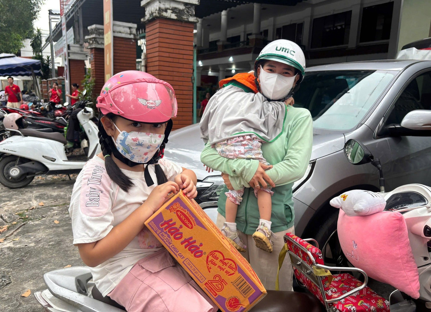 Thiếu nhi TPHCM cùng mẹ đến điểm tiếp nhận ủng hộ đồng bào
