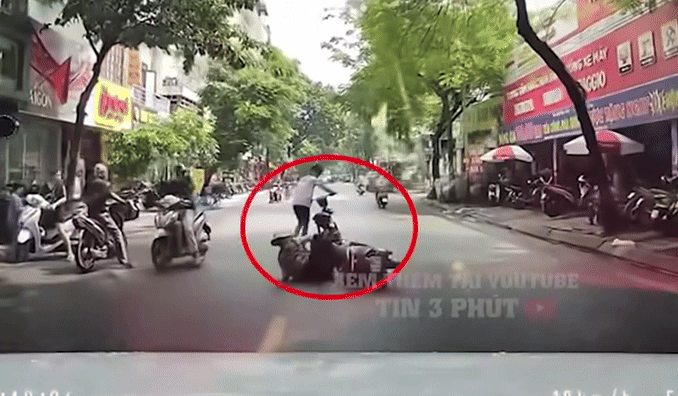 Kết quả khiến người phụ nữ này ngã xuống đường đầy đau đớn. Đáng chú ý, sau vụ việc, thiếu niên không những không hỏi han người phụ nữ mà còn vội đứng dậy rồi điều khiển xe rời đi. Toàn bộ sự việc được camera hành trình của ô tô đi phía sau ghi lại.