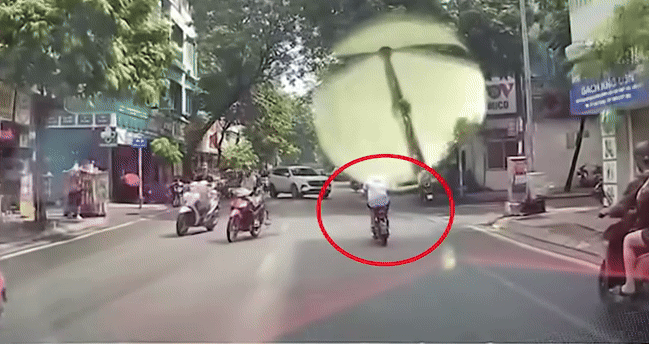 Dù thấy ô tô đi ngược chiều ở trước mặt nhưng thiếu niên này vẫn phóng nhanh rồi thể hiện kỹ năng lạng lách. Dù không tông trúng chiếc ô tô nhưng ngay sau đó lại đụng trúng một người phụ nữ đi xe máy đang qua đường.