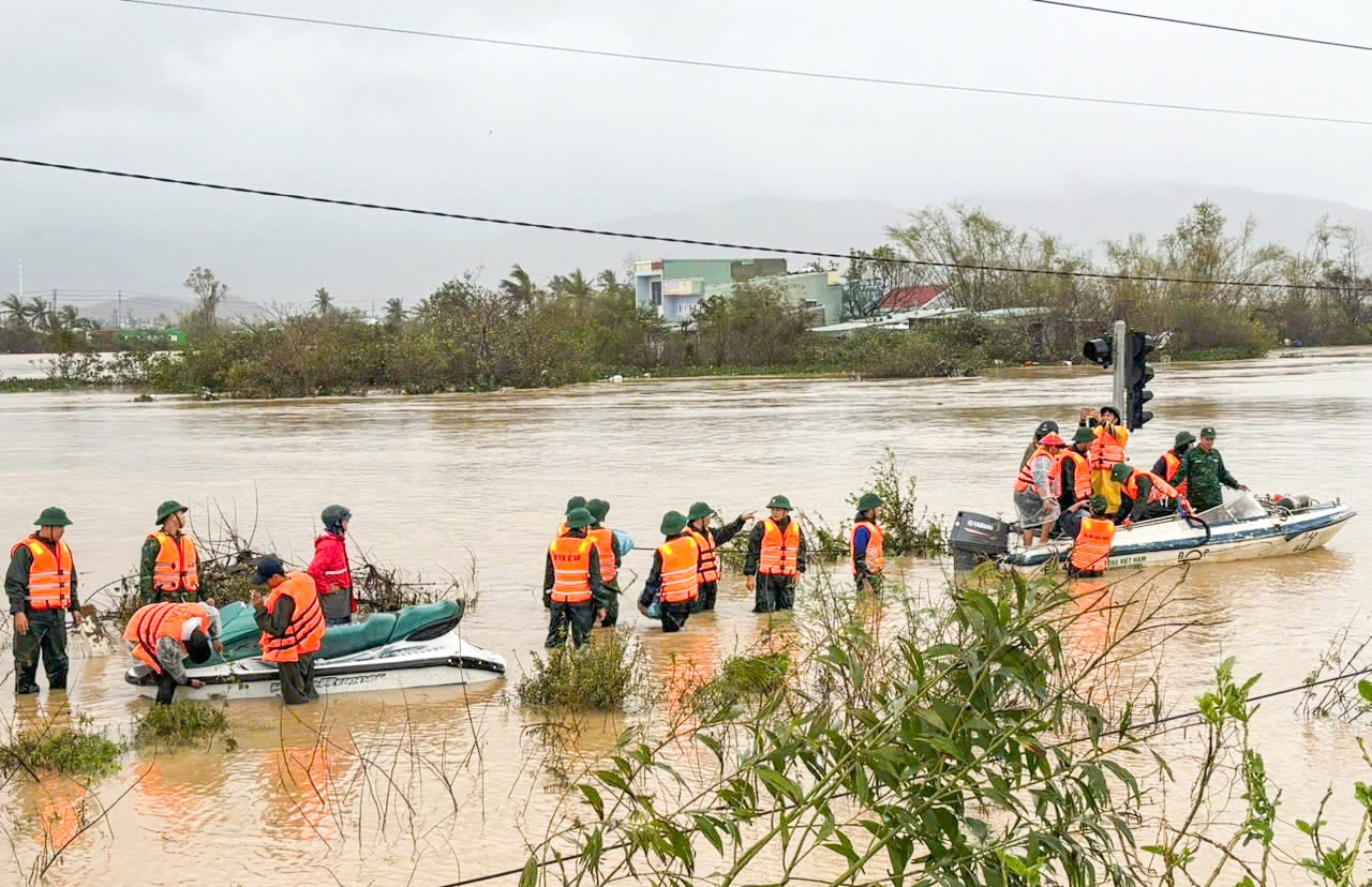 Những ngày nước lũ dâng cao nhất, khu phố 6 phường Quy Nhơn Đông (tỉnh Gia Lai) gần như bị cô lập hoàn toàn. Thiếu tá Nguyễn Khắc Thinh cùng tổ công tác gồm 4 người được giao nhiệm vụ tiếp cận khu vực này để hỗ trợ người dân.