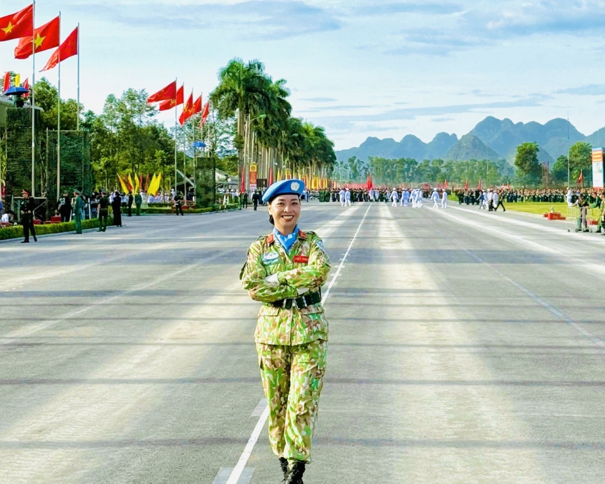 Năm 2025 vừa qua, Tú Uyên được tham gia tập luyện A80. Lúc này, con của Tú Uyên đã lớn thêm một chút, thời gian xa nhà cũng không lâu nên Tú Uyên bớt lo lắng hơn. Luyện tập A80 dưới cái nắng hè gay gắt, có người bị ngất vì nắng nóng, nhưng đã quen chịu đựng khó khăn ở vùng đất Abyei, Tú Uyên vượt qua dễ dàng hơn. Hôm diễu binh, diễu hành, là người con Hà Nội nên khi trong hàng quân đi giữa lòng dân diễu hành qua những tuyến phố quen thuộc chất chứa bao kỷ niệm tuổi thơ: Phố Tràng Thi - Tràng Tiền… nghe tiếng hò reo: “Các chị đẹp quá!”, “Hòa bình đẹp quá các chị ơi!” là cảm xúc mà Tú Uyên nhớ mãi. “Trải qua những mất mát từ đợt đi châu Phi (Abyei), tham gia nhiệm vụ tại A80, em có sự đằm, sự chín hơn trong mỗi bước tập luyện. Với em, nhiệm vụ tại A80 là một phần quà nho nhỏ cho người chồng quá cố của em”, Tú Uyên chia sẻ.