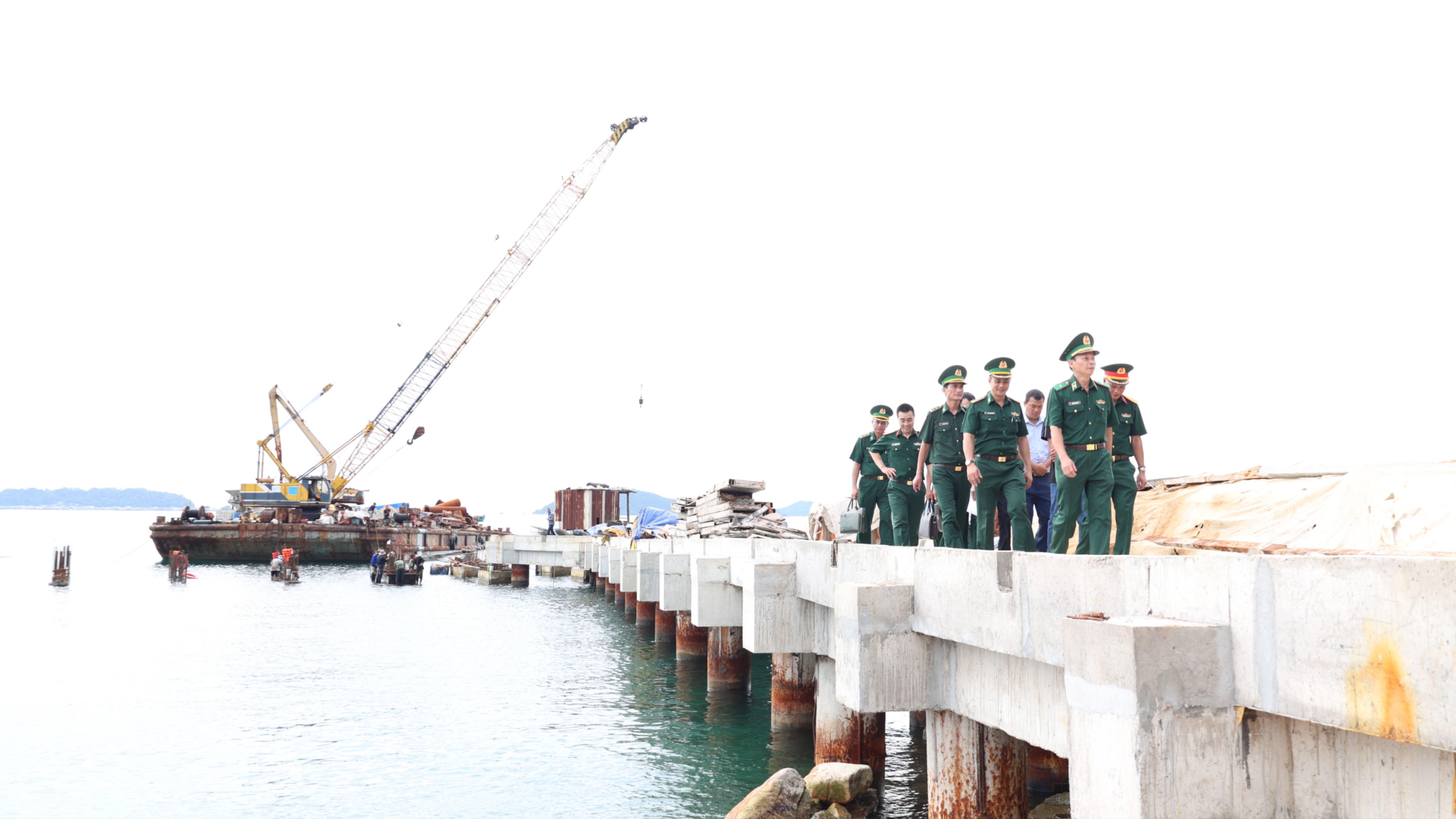 Thiếu tướng Hoàng Hữu Chiến, Phó Tư lệnh, Tham mưu trưởng BĐBP và đoàn công tác nắm tình hình tại đặc khu Kiên Hải. Ảnh: TUẤN KIỆT