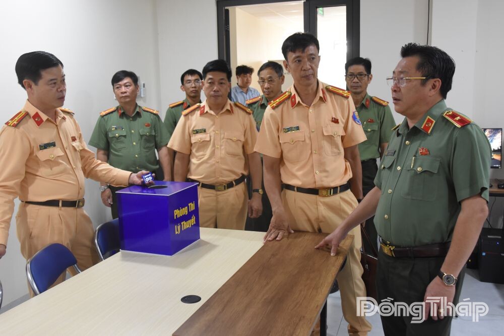 Thiếu tướng Lâm Phước Nguyên kiểm tra thực tế công tác sát hạch lái xe.