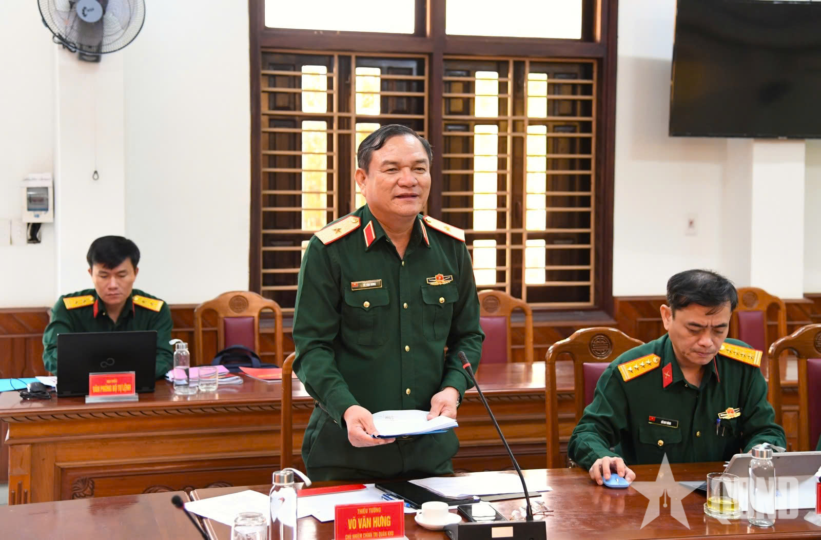 Thiếu tướng Võ Văn Hưng, Chủ nhiệm Chính trị Quân khu 5 phát biểu tại buổi làm việc.