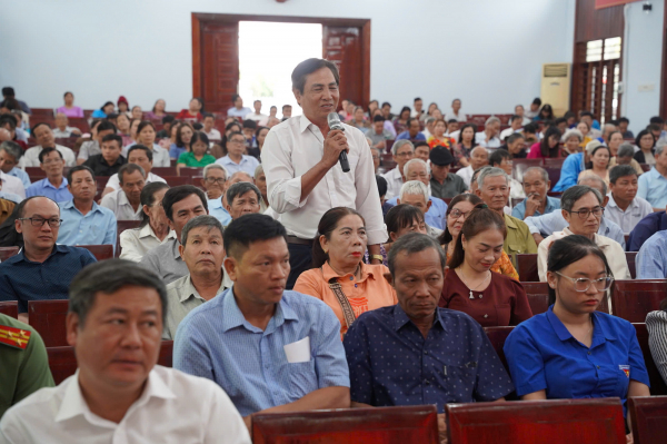 Cử tri ở xã Vạn Ninh, tỉnh Khánh Hòa trao đổi thông tin với Thiếu tướng Nguyễn Hữu Phước.