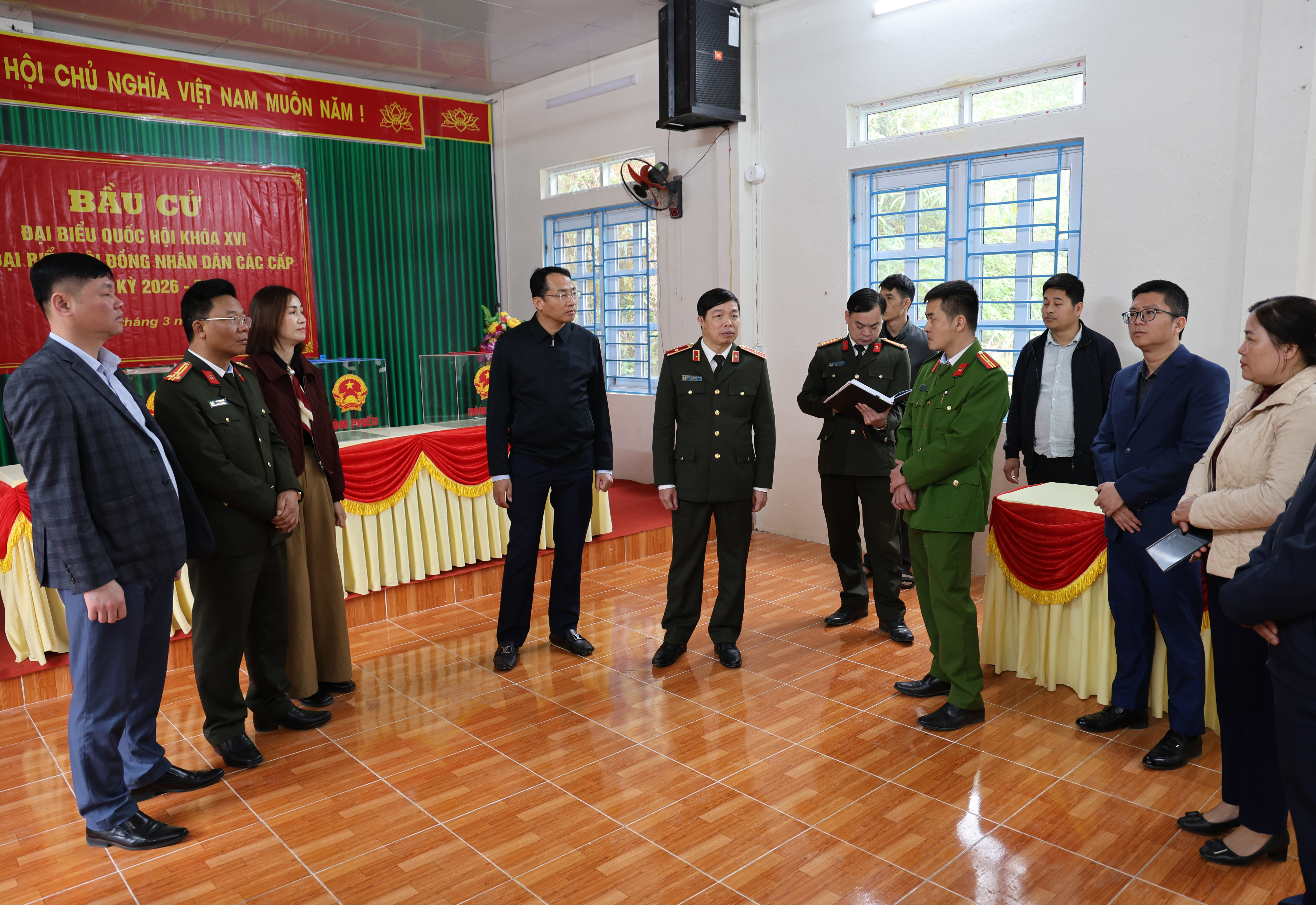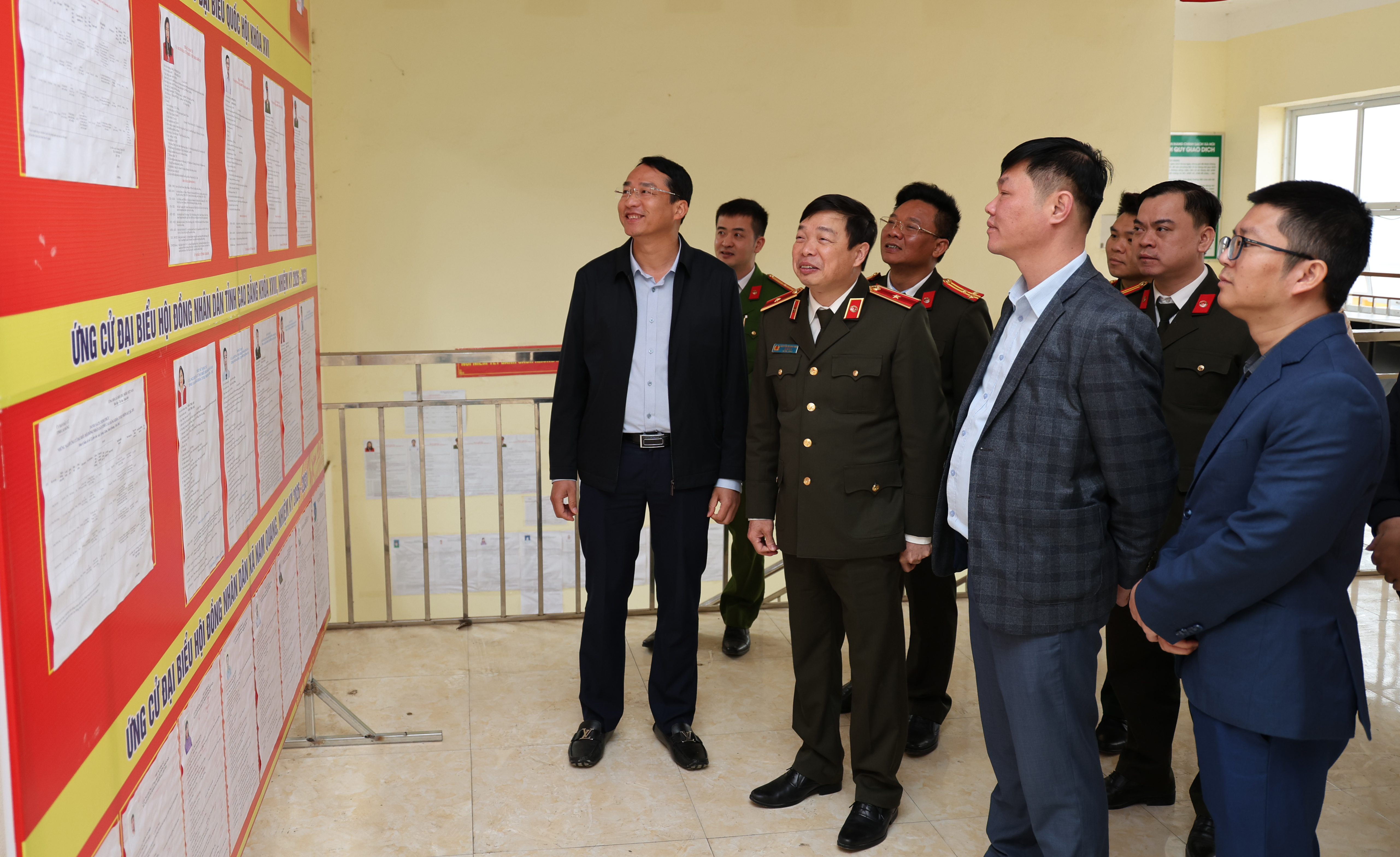 Đoàn công tác kiểm tra, nắm bắt tình hình triển khai phương án bảo vệ các khu vực bỏ phiếu; công tác lập và niêm yết danh sách cử tri, người ứng cử; hoạt động tuyên truyền bầu cử; bảo đảm an ninh chính trị, trật tự, an toàn xã hội; chuẩn bị cơ sở vật chất phục vụ ngày bầu cử.