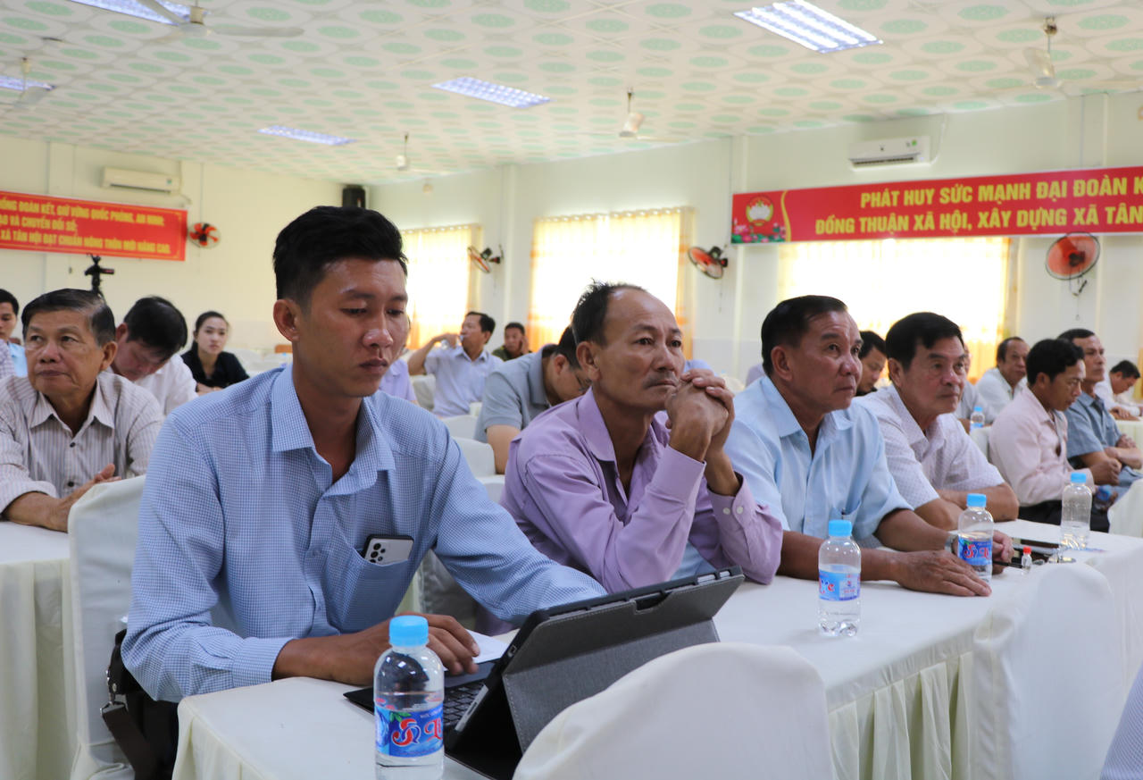 Cử tri xã Tân Hội tham dự hội nghị và đóng góp ý kiến.