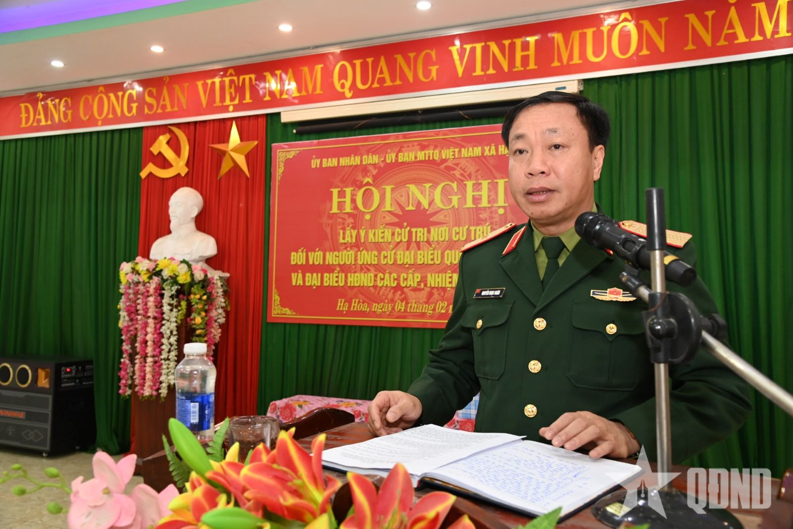 Tại hội nghị, Thiếu tướng Nguyễn Ngọc Ngân, Phó chủ nhiệm Chính trị Quân khu 2 báo cáo kết quả các hội nghị hiệp thương, lựa chọn, giới thiệu đồng chí Phạm Hùng Hưng, Phó tư lệnh Quân khu 2 ứng cử đại biểu Quốc hội khóa XVI.