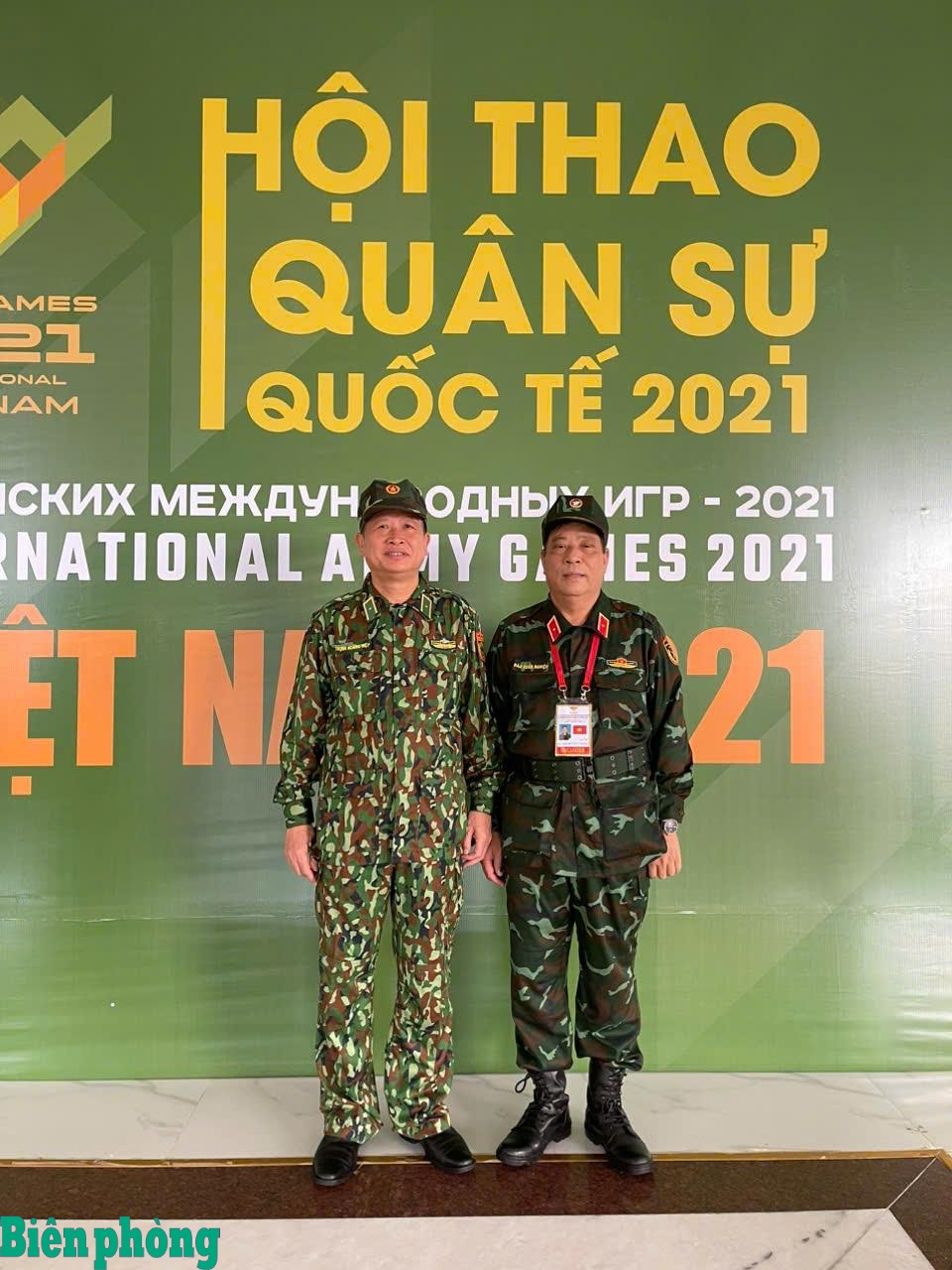 Thiếu tướng Trịnh Hoàng Hiệp và Thiếu tướng Đào Xuân Nghiệp, Phó chủ nhiệm Tổng cục Công nghiệp Quốc phòng tại Hội thao Quân sự quốc tế năm 2021.