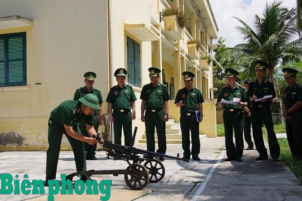 Thiếu tướng Trịnh Hoàng Hiệp kiểm tra tháo lắp súng Đại liên K53 tại tại Đồn Biên phòng Mũi Né, BĐBP Bình Thuận năm 2019.