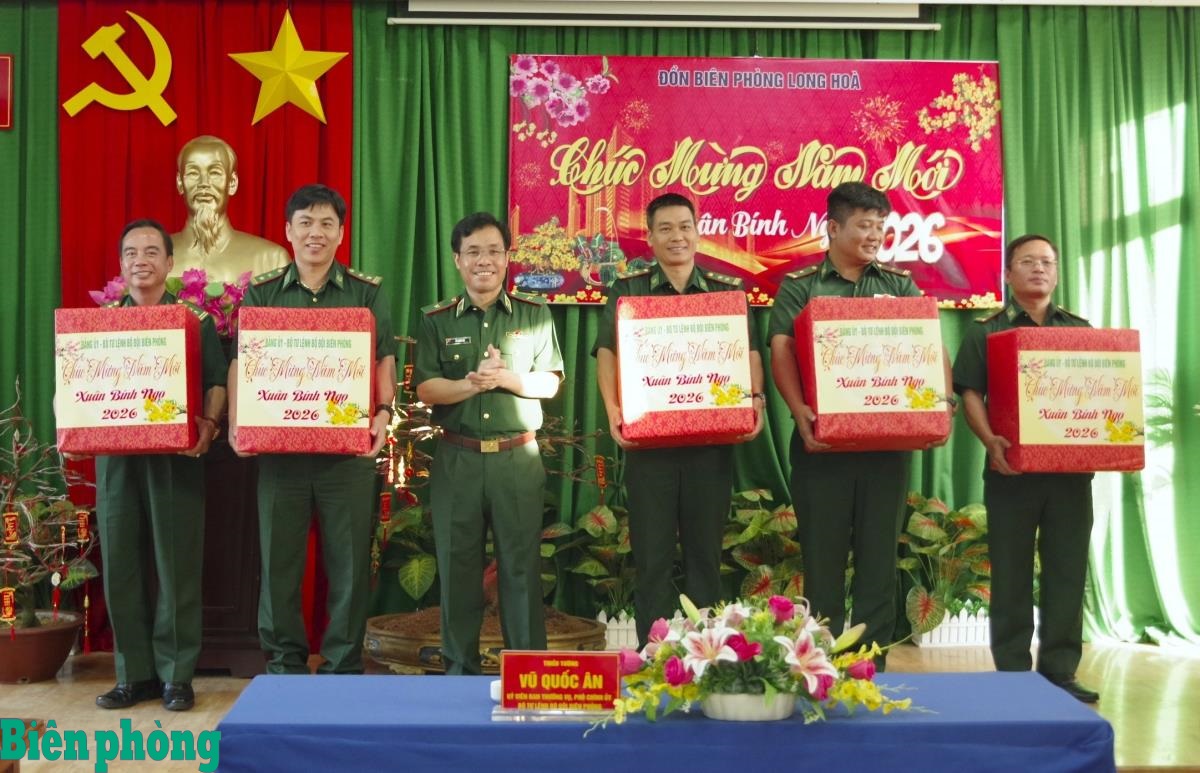 Nhân dịp Tết Nguyên đán Bính Ngọ 2026, thay mặt Đảng ủy, Bộ Tư lệnh Bộ đội Biên phòng, Thiếu tướng Vũ Quốc Ân trao các phần quà và chúc toàn thể cán bộ, chiến sĩ các đơn vị sức khỏe, hạnh phúc, vui Xuân, đón Tết lành mạnh, an toàn, tiết kiệm, sẵn sàng chiến đấu cao.