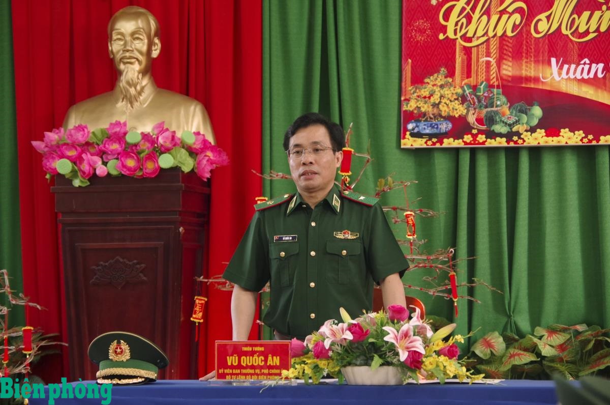 Phát biểu tại buổi thăm, chúc Tết các đơn vị, Thiếu tướng Vũ Quốc Ân ghi nhận, đánh giá cao kết quả các đơn vị đạt được trong năm 2025. Thiếu tướng Vũ Quốc Ân đánh giá cao tính chủ động của các đơn vị trong chủ động xây dựng kế hoạch, triển khai công tác sẵn sàng chiến đấu trong thời gian cao điểm trước, trong và sau Tết Nguyên đán Bính Ngọ 2026, đặc biệt trong tổ chức Chương trình “Xuân Biên phòng ấm lòng dân bản”; thăm hỏi, tặng quà, động viên các gia đình khó khăn trên địa bàn đóng quân.
