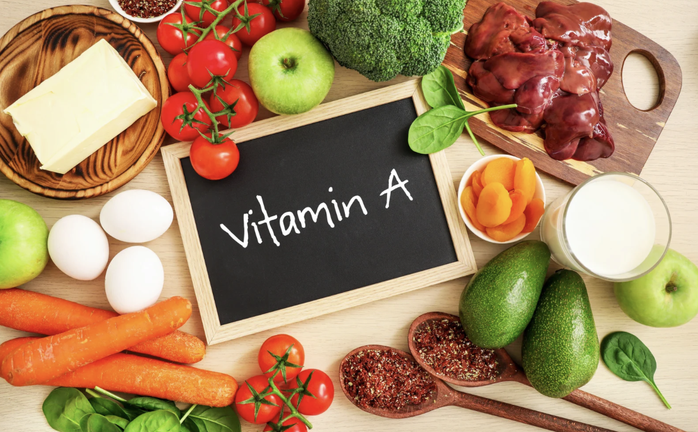 Vitamin A có trong nhiều thực phẩm. Cụ thể ở gan động vật, lòng đỏ trứng, sữa và các chế phẩm từ sữa. Đối với thực vật có trong rau củ quả màu xanh đậm hoặc vàng cam như rau ngót, rau dền, bí đỏ, cà rốt, đu đủ chín, xoài chín…