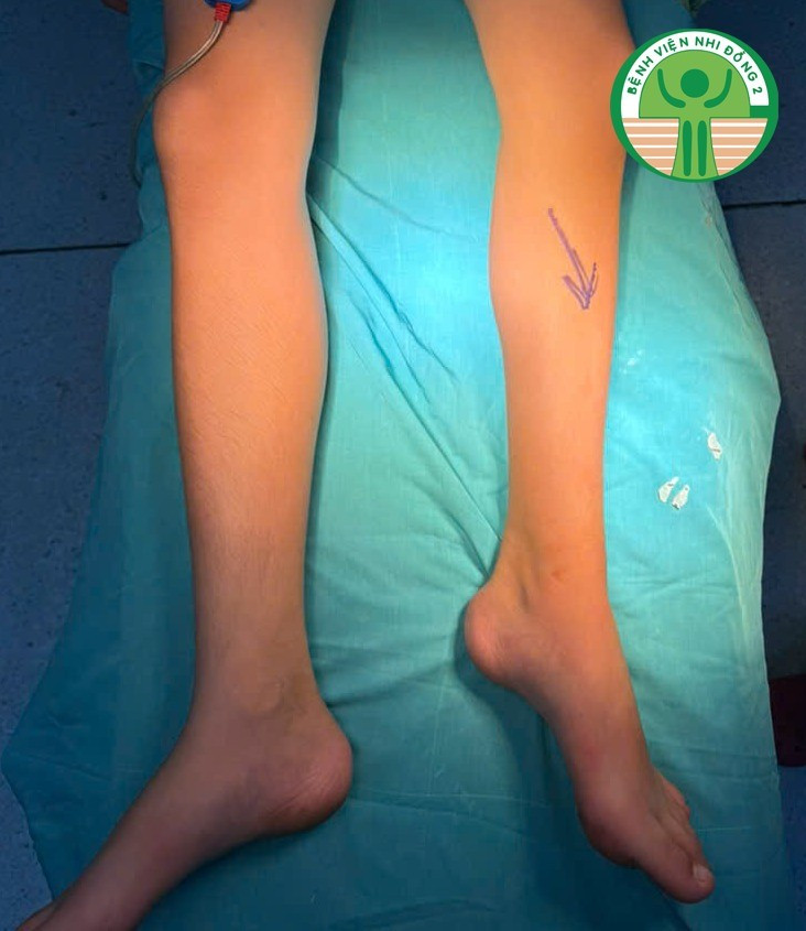 Tại Bệnh viện Nhi đồng 2, bé trai 13 tuổi bị thiểu sản xương mác nhập viện với tình trạng: Cẳng chân ngắn và biến dạng; Mất vững cổ chân; Chênh lệch chiều dài chi do thiểu sản xương mác.