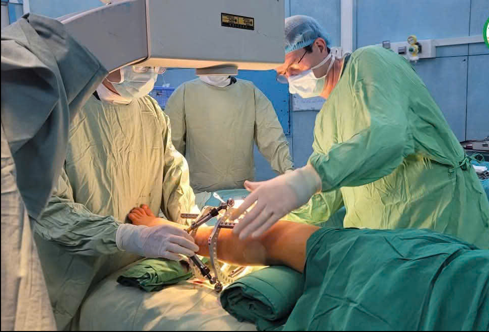 Sau khi thăm khám và hội chẩn cùng bác sĩ Đoàn – chương trình Children Action (Children Action là tổ chức phi chính phủ quốc tịch Thụy Sỹ), ê- kíp quyết định kéo dài chi bằng khung cố định ngoài chuyên dụng.