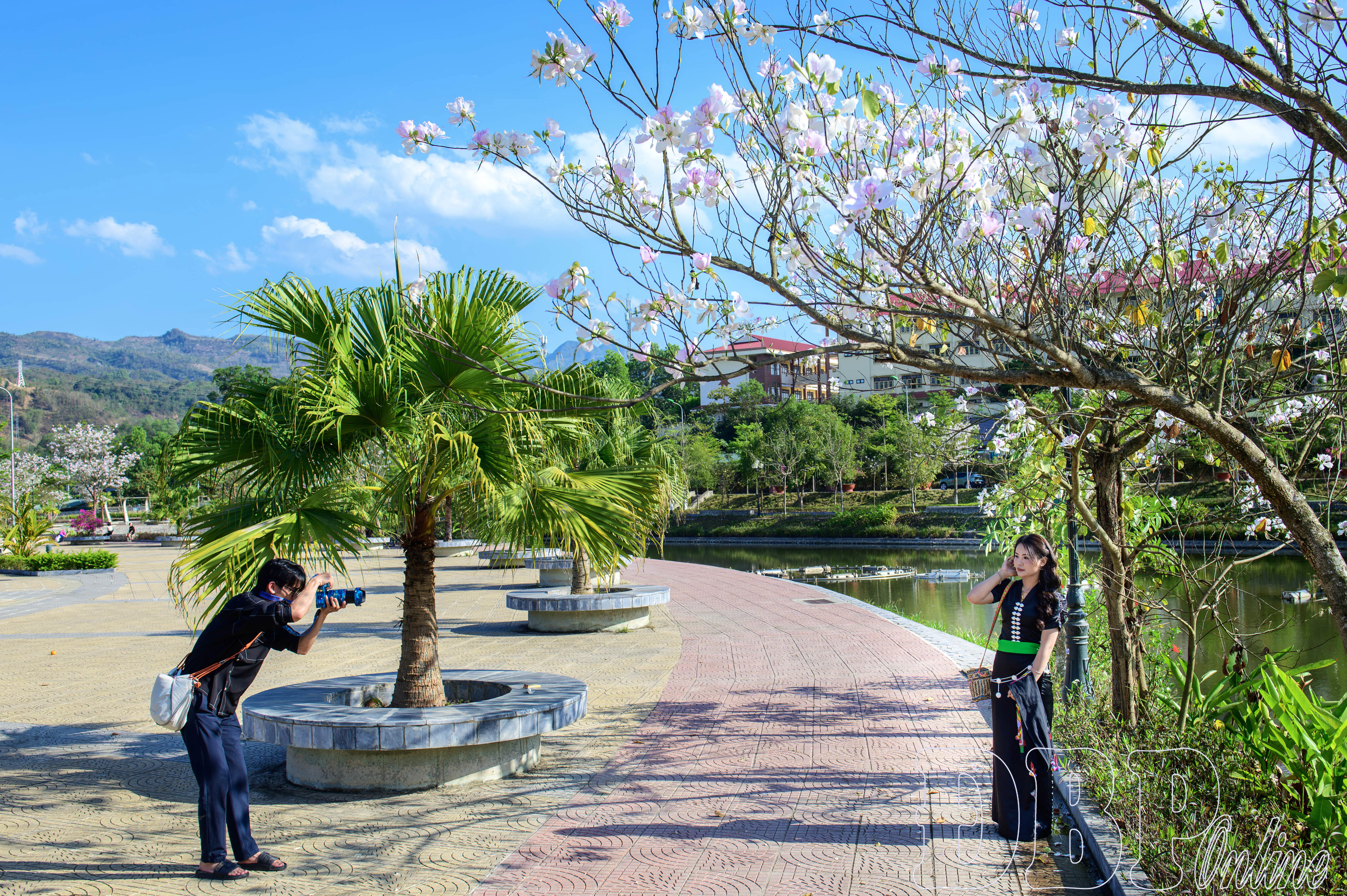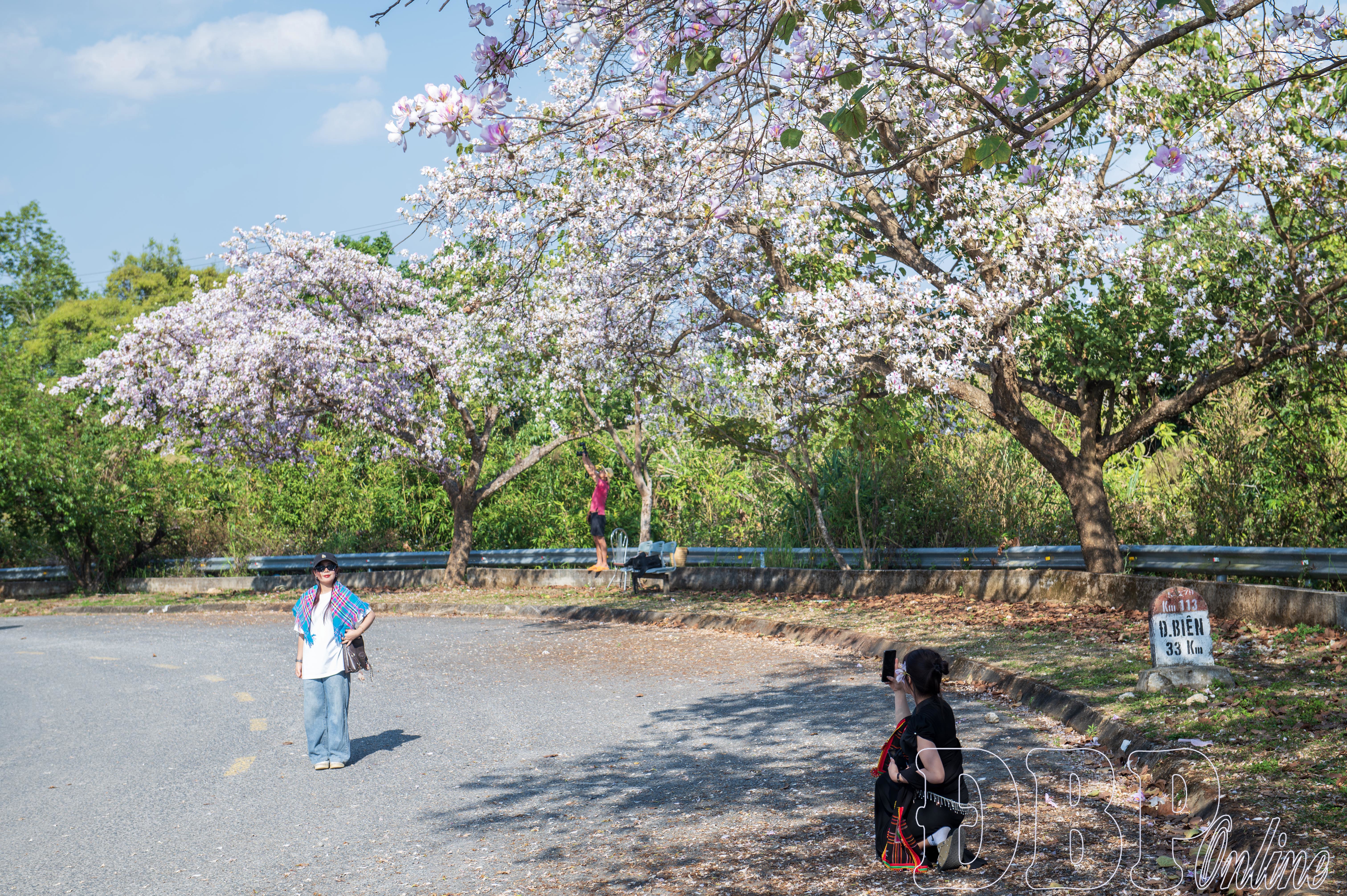 Sức hút của hoa ban khiến nhiều địa điểm khu vực đô thị Điện Biên Phủ trở thành “studio ngoài trời”. Tại Công viên Võ Thị Sáu, cầu Cảnh Quang, ven sông Nậm Rốm hay các cung đường gần cửa khẩu Tây Trang, xã Sam Mứn, từng tốp thợ ảnh mang theo ba lô thiết bị, đèn và ống kính tiêu cự dài hoặc góc rộng miệt mài làm việc. Dưới tán cây ban đang vào độ nở rộ, họ liên tục điều chỉnh bố cục khung hình, căn chỉnh khẩu độ, tốc độ màn trập để bắt trọn những khoảnh khắc đẹp nhất.