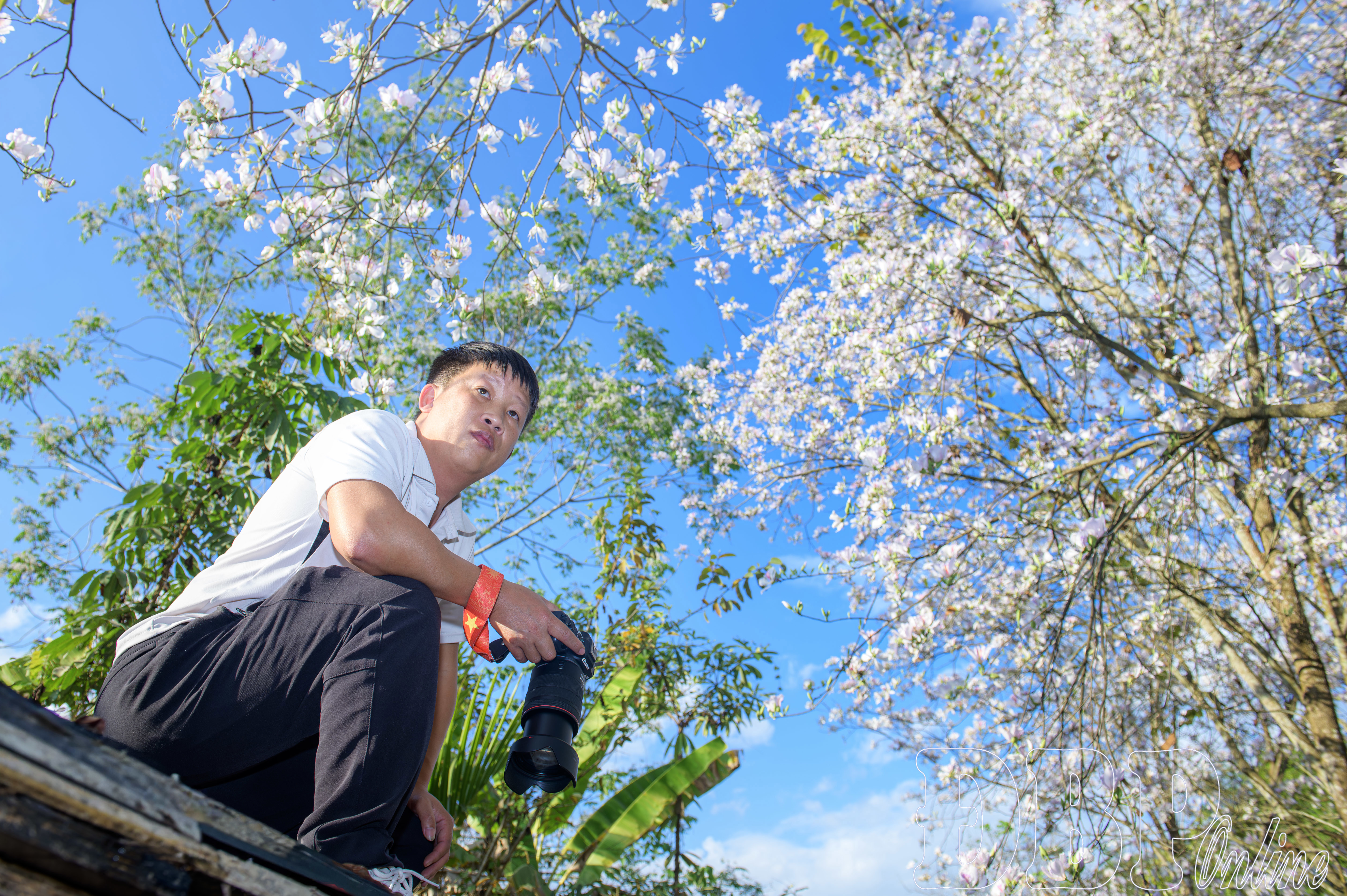 Nhiều thợ ảnh chia sẻ, với nhiếp ảnh ngoài trời, đặc biệt là chụp chân dung dưới tán hoa, yếu tố ánh sáng đóng vai trò quyết định. Những thợ ảnh có kinh nghiệm thường chọn thời điểm sáng sớm hoặc cuối chiều, khi ánh sáng có góc chiếu xiên và độ tương phản mềm, giúp cánh hoa ban hiện lên trong trẻo, tạo hiệu ứng tự nhiên phía sau chủ thể. Đôi khi chỉ cần một làn gió nhẹ làm rung những cánh hoa, người thợ ảnh lập tức bấm máy liên tục theo chế độ chụp liên tiếp để ghi lại chuyển động tinh tế ấy.