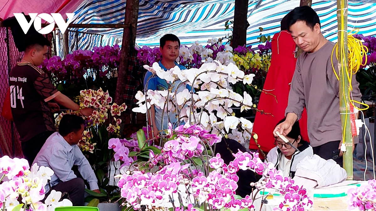 Thị trường hoa lan tại thành phố Vinh cũ, Nghệ An sôi động những ngày cận Tết. (Ảnh: Bá Thăng)