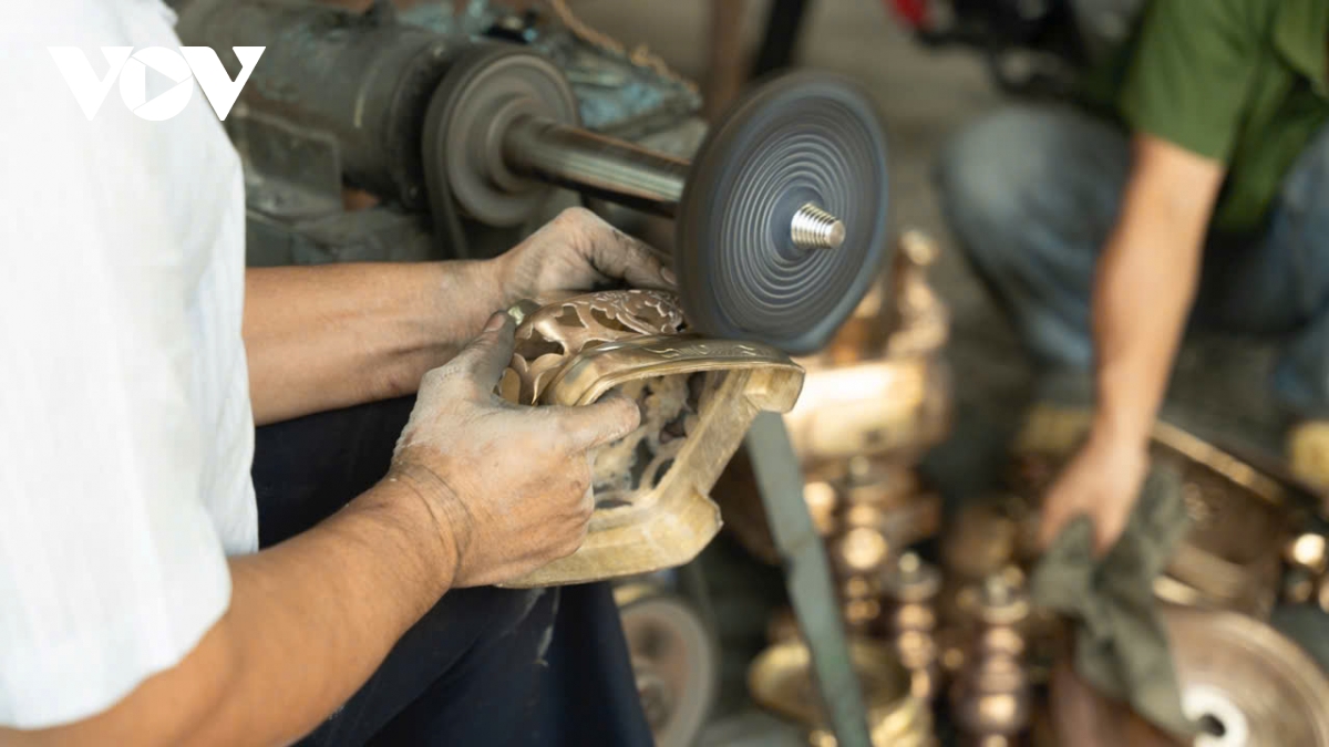 Ngoài lư hương, những người thợ còn đánh bóng thêm chân đèn,...