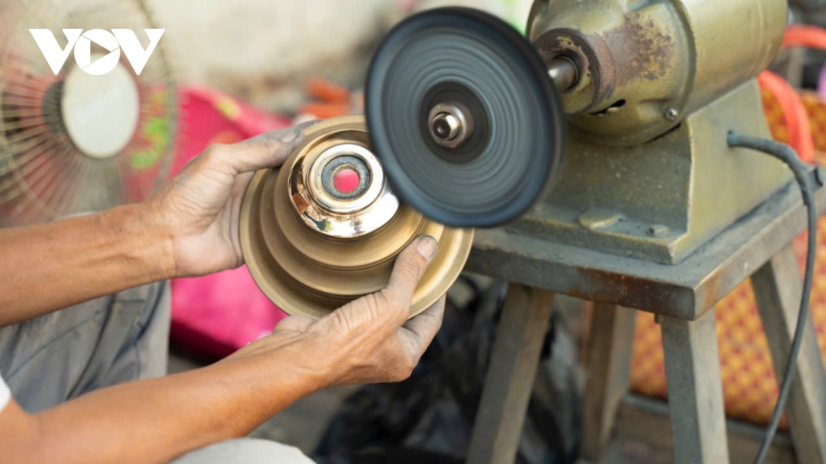 Theo ông Nguyễn Hữu Được, quy trình đánh bóng đòi hỏi sự cẩn trọng ở từng công đoạn. Sau khi tháo rời các bộ phận, lư được quét dung dịch tẩy rửa rồi đưa vào máy quay mô tơ để loại bỏ lớp bụi bẩn, oxy hóa. Tiếp đó là các bước đánh bóng, chà bột tẩy và bột bóng để bề mặt trơn nhẵn, sáng đều và hạn chế oxy hóa.