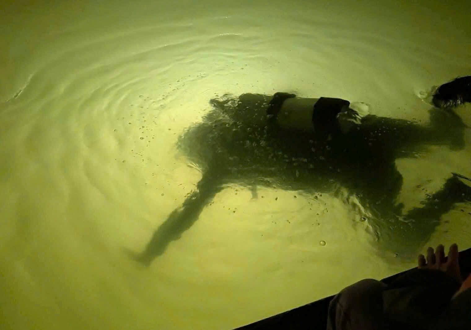 Việc tìm kiếm diễn ra xuyên đêm, gặp không ít khó khăn do mực nước sâu và dòng chảy. Dù vậy, lực lượng thợ lặn vẫn kiên trì triển khai các phương án dò tìm với mong muốn sớm giúp người dân tìm lại tài sản bị đánh rơi.